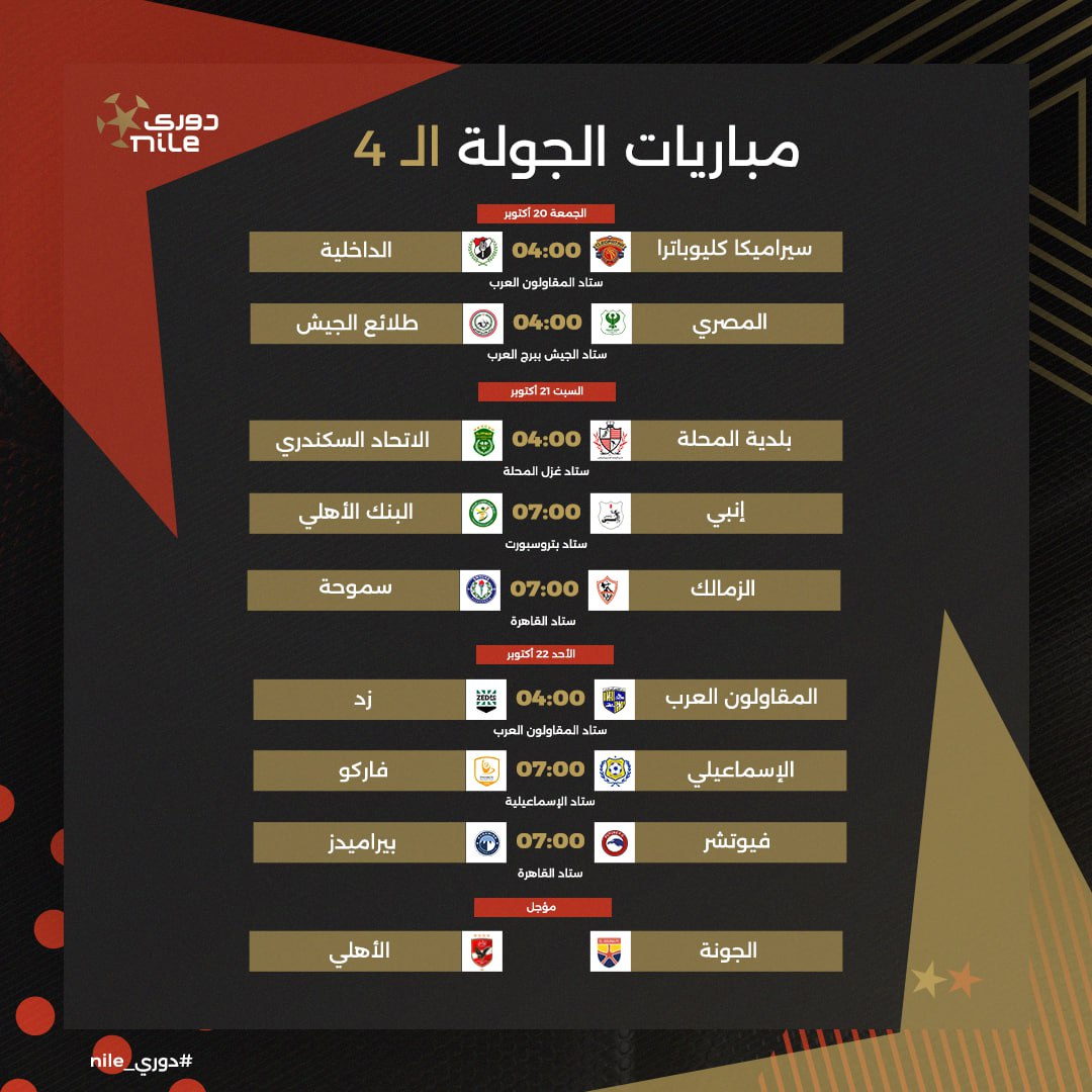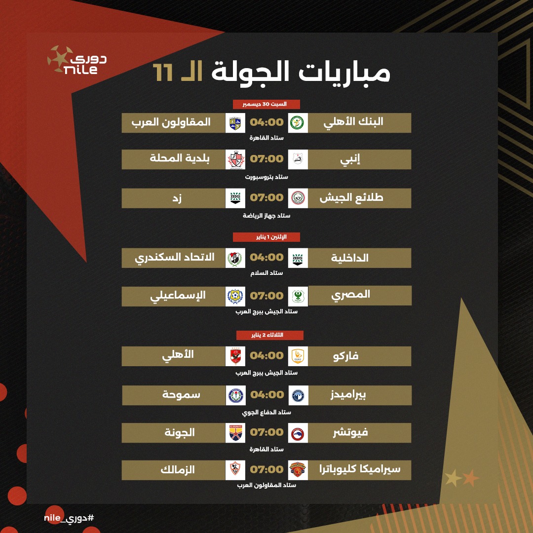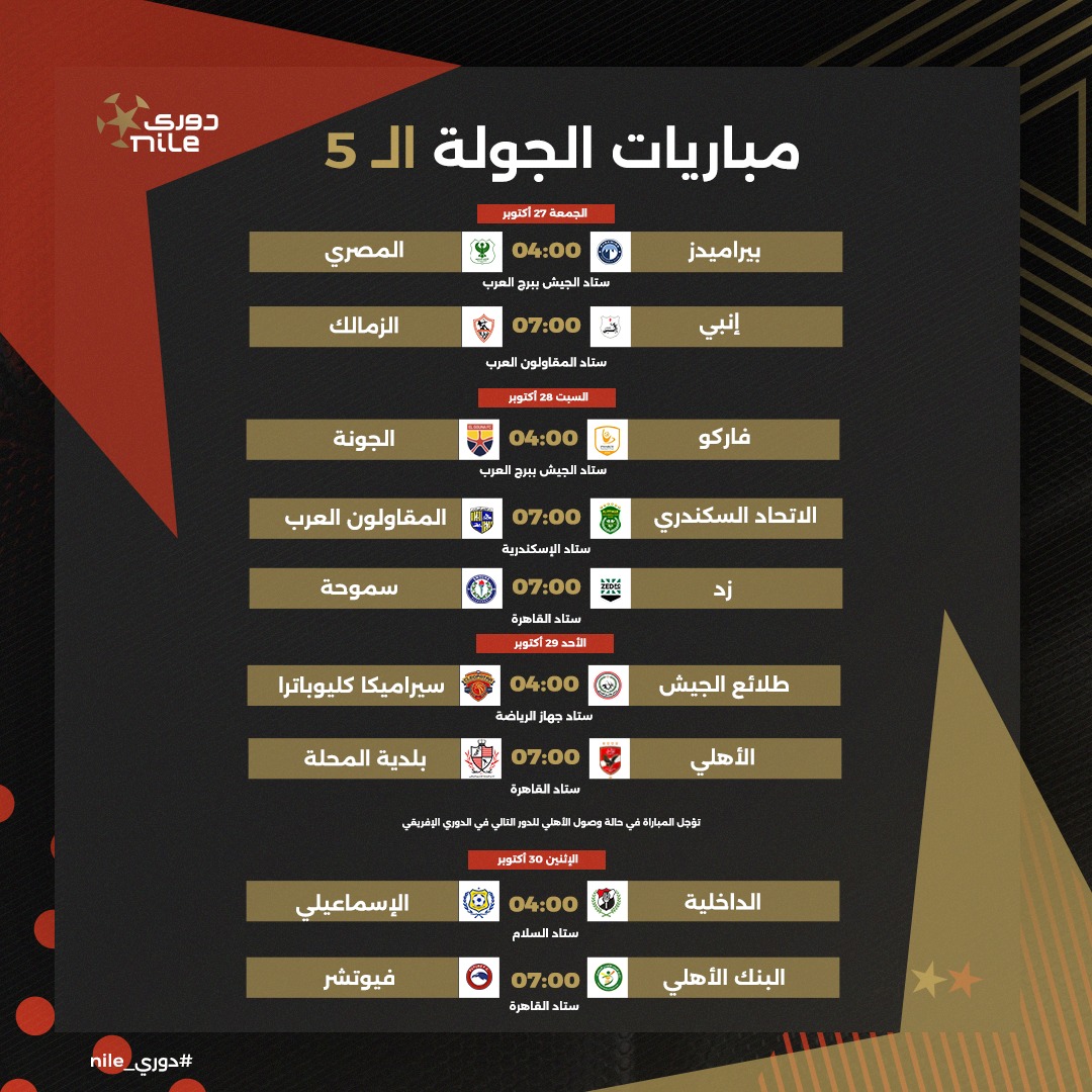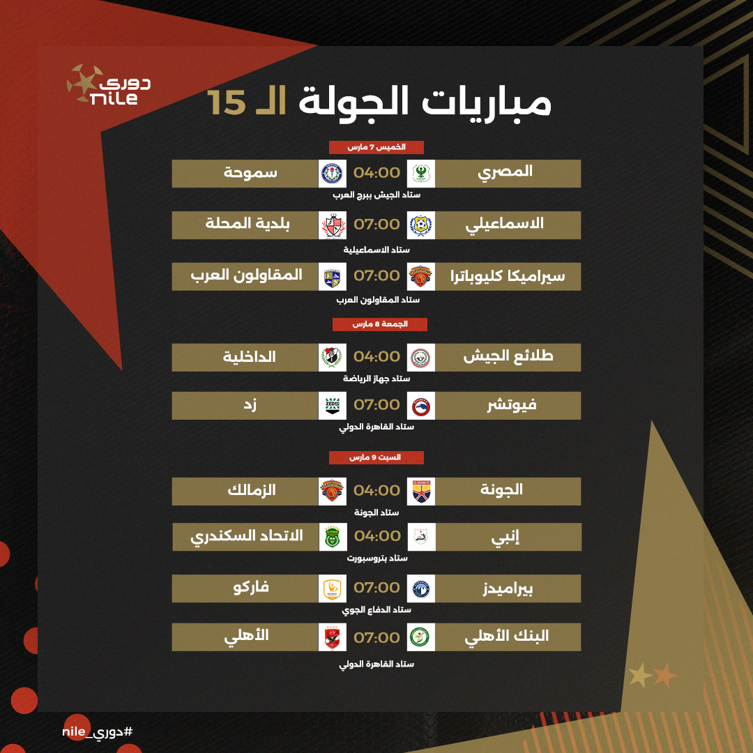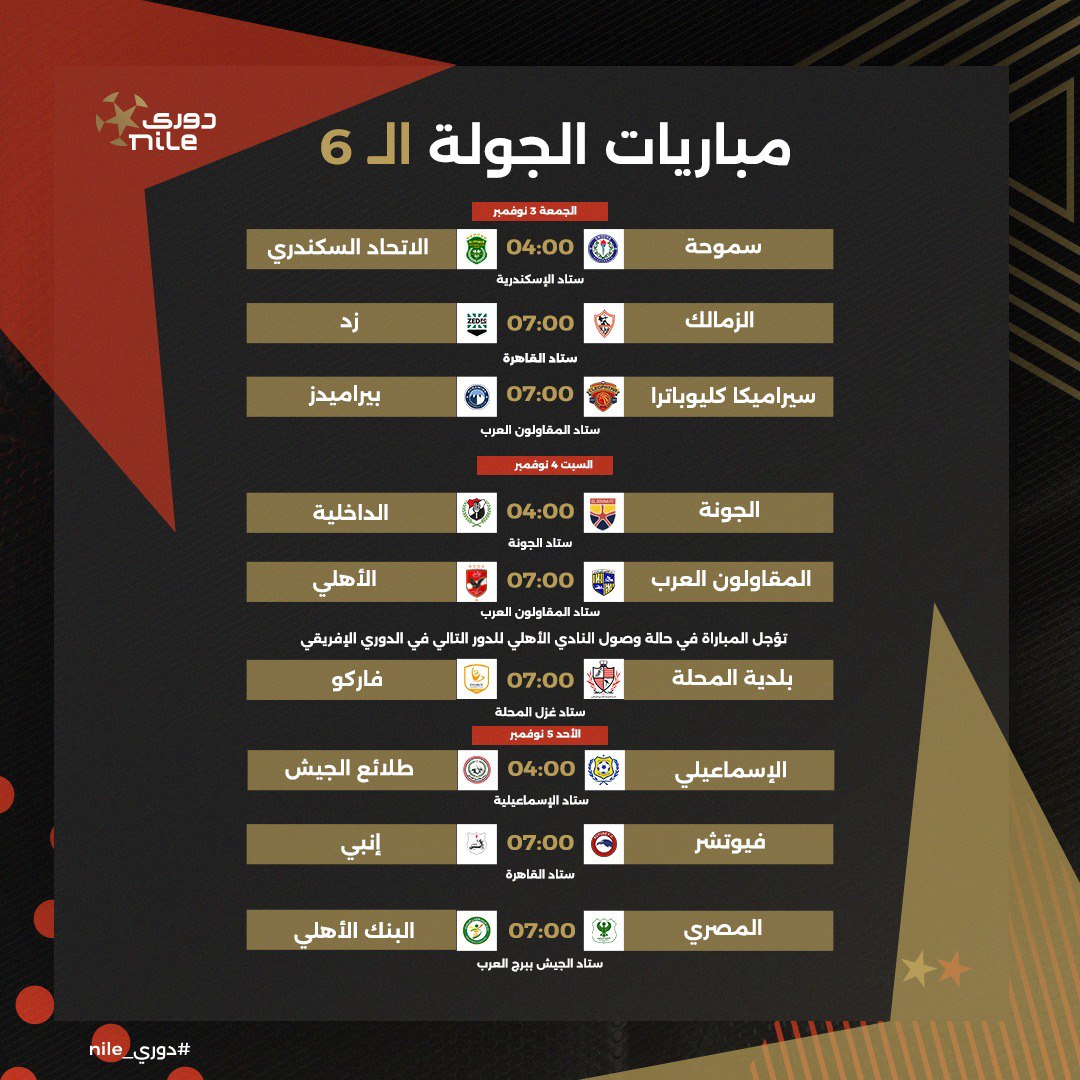 جدول مواعيد الدوري المصري 2024/2023 كاملاً، بتوقيت القاهرة حسب ما أعلنت الرابطة المصرية، علماً بأن فارق توقيت مصر متأخر عن الإمارات بمقدار ساعة.