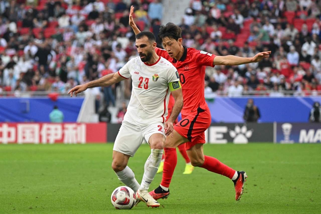 على ملعب الثمامة في الدوحة أمام 36627 متفرجاً، سجّل لكوريا نجم توتنهام الإنجليزي هيونغ - مين سون «9 من ركلة جزاء» والمدافع يزن العرب «90 + 1 خطأ في مرمى فريقه»، وللأردن يونغ - وو بارك «37 خطأ في مرمى فريقه» ويزن النعيمات «45 + 6»، وكان الأردن قريباً جداً من تحقيق ثاني أكبر مفاجأة في البطولة، بعد فوز العراق على اليابان حاملة اللقب أربع مرات 2 - 1 أول من أمس.