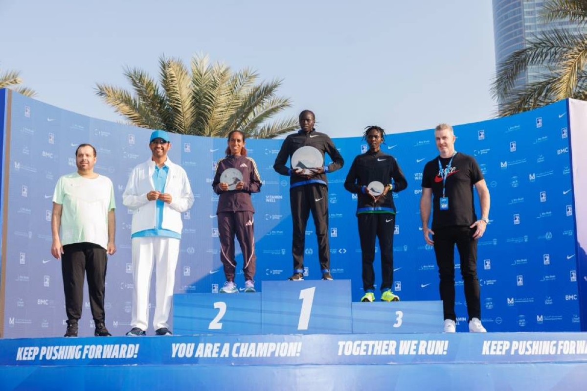 توج الفائزين، وأعطى شارة الانطلاقة لسباقي الماراثون وسباق الـ 10 كيلومترات، معالي الدكتور سلطان بن أحمد الجابر وزير الصناعة والتكنولوجيا المتقدمة، بحضور عدد كبير من القيادات الرياضية، وشركاء الحدث، وممثلي الشركات الراعية.