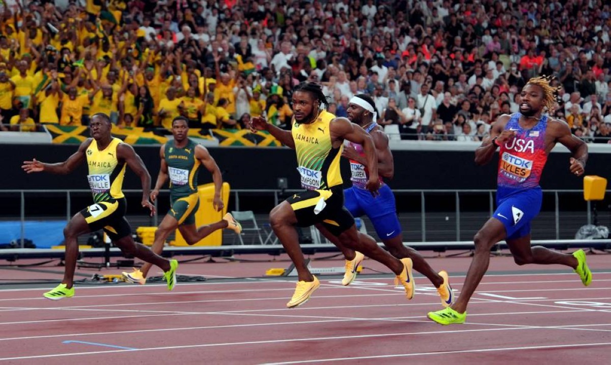 حصد العداء أوبليك سيفيل الميدالية الذهبية في سباق 100 متر عدواً ضمن بطولة العالم لألعاب القوى مسجلاً أفضل زمن شخصي له وهو 9.77 ثوانٍ اليوم الأحد، ليتفوق على مواطنه كيشان طومسون صاحب الميدالية الفضية الأولمبية والذي جاء في المركز الثاني مرة أخرى بزمن 9.82 ثوانٍ. وحصل البطل المدافع عن اللقب نواه لايلز على الميدالية البرونزية بزمن 9.89 ثوانٍ، بينما فشلت الولايات المتحدة في الفوز باللقب لأول مرة منذ عام 2015.