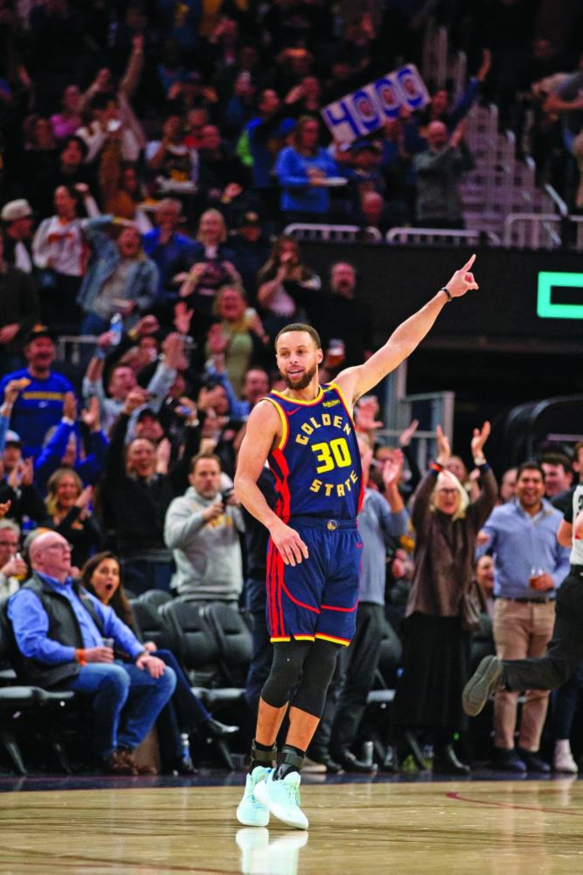 بات ستيفن كوري نجم غولدن ستايت ووريرز أوّل لاعب في دوري كرة السلة الأمريكي للمحترفين «NBA» يسجل 4000 رمية ثلاثية، معززاً رقمه القياسي كأعظم لاعب في التاريخ من وراء القوس في فوز فريقه الساحق على ساكرامنتو كينغز 130-104.