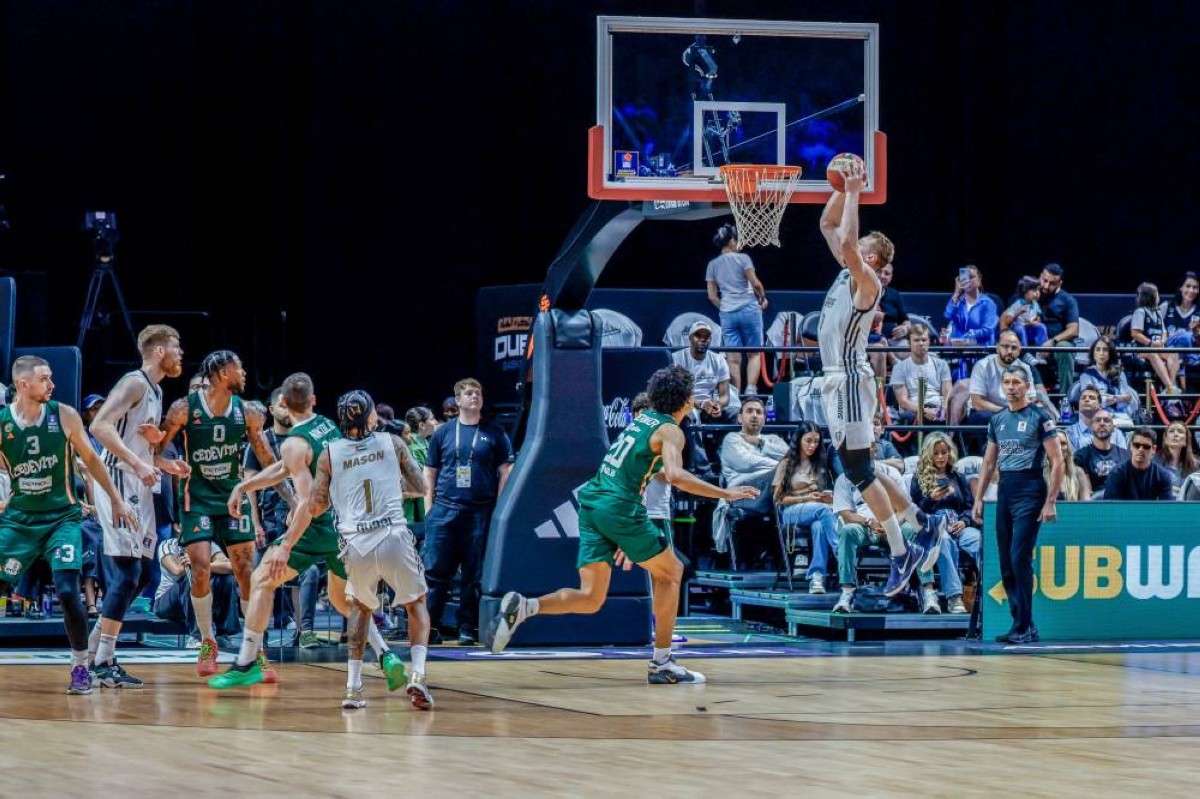 شهد صاحب السمو الشيخ محمد بن راشد آل مكتوم نائب رئيس دولة الإمارات رئيس مجلس الوزراء حاكم دبي "رعاه الله"، جانباً من مباراة ربع النهائي لدوري الرابطة الأدرياتيكي بين فريق دبي لكرة السلة وفريق سيديڤيتا اولمبيا السلوفيني التي أقيمت في صالة كوكاكولا أرينا في دبي.