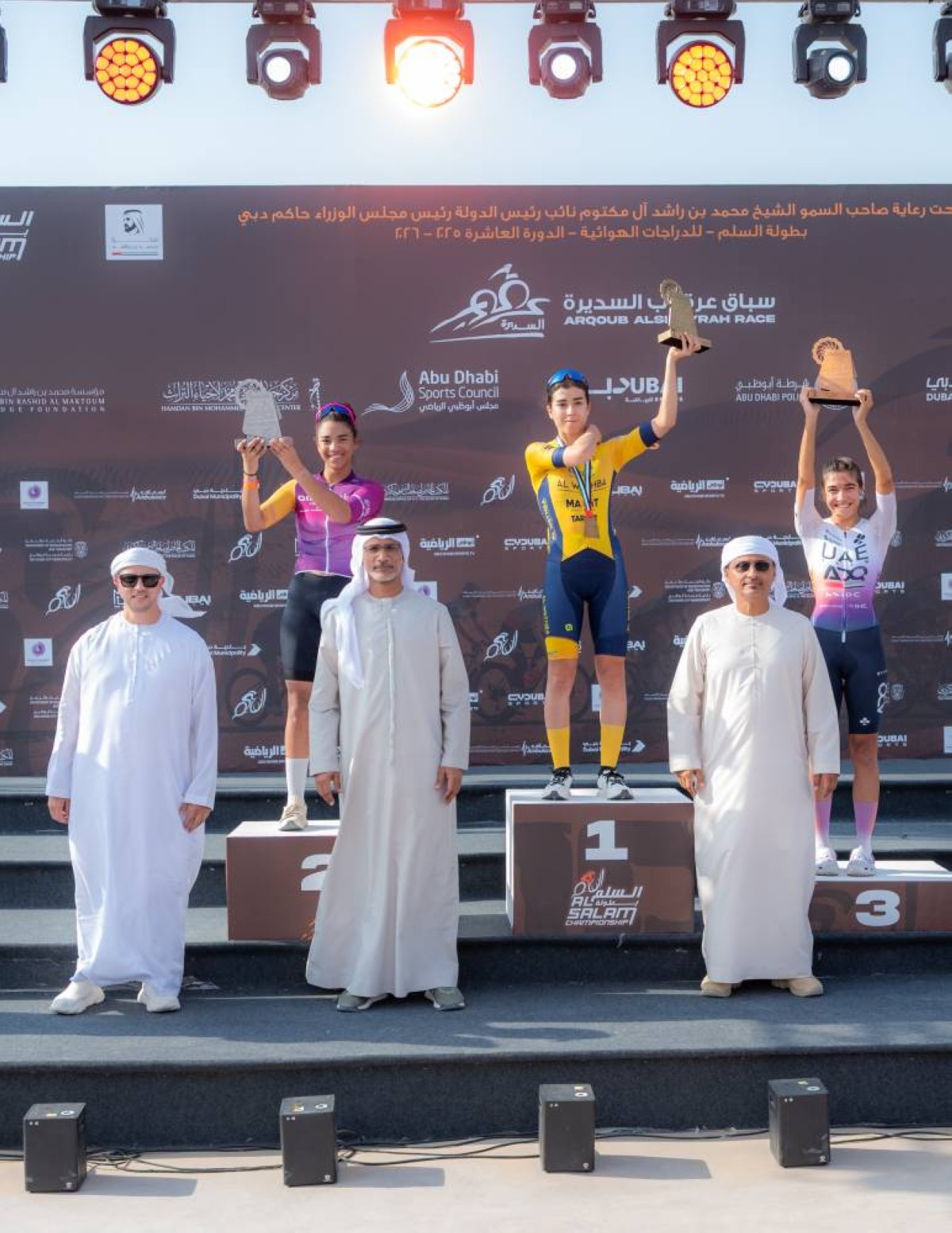 وأكد سعادته، أن نجاح هذا السباق يشكل مسك ختام الموسم العاشر لبطولة السلم للدراجات الهوائية، والتي شهدت إقامة سباقات شاملة لجميع فئات منافسات الدراجات الهوائية، تأكيداً على مكانة البطولة التي أصبحت الأكبر من نوعها على مستوى العالم على صعيد منافسات الهواة والمحترفين، حيث شهدت هذه النسخة أيضاً إقامة سباق «الأمن والأمان» المخصص للدراجين الإماراتيين بالتعاون مع القيادة العامة لشرطة دبي، وسباق «ديوان سمو حاكم دبي» الذي انطلق للعام الثاني على التوالي من عند ديوان سمو حاكم دبي وصولاً إلى محمية المرموم بمشاركة ألمع الدراجين المحترفين، وسباق السيدات الذي أقيم في محمية المرموم بمشاركة عالمية، كما أقيم السباق الصحراوي للسيدات، والسباق الصحراوي العام للرجال المحترفين والهواة والسيدات. وتميز الحدث بمشاركة قافلة الهجن من مركز حمدان بن محمد لإحياء التراث، حيث زينت القافلة التي يقودها مشاركون من مختلف الجنسيات المسار الخاص بالسباق في منطقة سيح السلم بدبي.