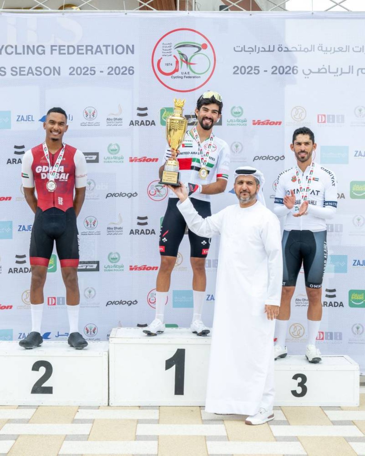 توج الفائزين في مختلف الفئات كل من منصور بوعصيبة، رئيس مجلس إدارة اتحاد الإمارات للدراجات، ويوسف ميرزا، نائب رئيس مجلس الإدارة ورئيس اللجنة الفنية.