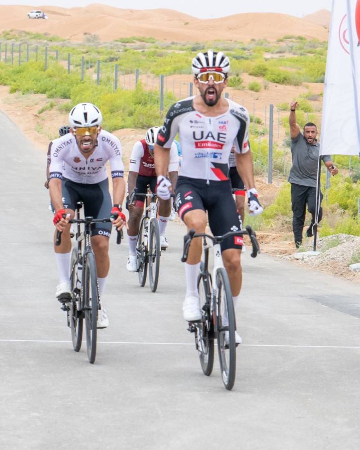 توج محمد المطيوعي، دراج فريق الإمارات، بلقب سباق بطولة الدولة للطريق لفئة الكبار، الذي أقيم اليوم في منطقة العين، وسط مشاركة واسعة بلغت 140 دراجاً في مختلف الفئات. وشهدت فئة الكبار، التي تنافس فيها 64 دراجاً لمسافة 110 كيلومترات صراعاً قوياً حتى الأمتار الأخيرة، قبل أن يحسم المطيوعي المركز الأول، متقدماً على عبد العزيز الهاجري من فريق الإقامة، الذي حل ثانياً، فيما جاء سيف معيوف من نادي شباب الأهلي في المركز الثالث.