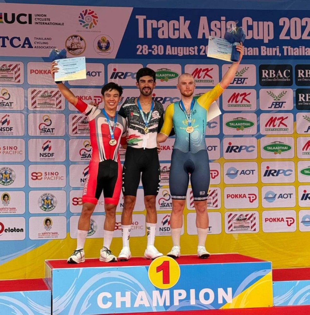 أحرز لاعب منتخب الإمارات للدراجات الهوائية محمد المطيوعي الميدالية الذهبية في سباق المطاردة الفردية، ضمن منافسات اليوم الثاني من بطولة كأس آسيا للمضمار المقامة حالياً في العاصمة التايلاندية بانكوك، والتي تستمر حتى 31 أغسطس الجاري.