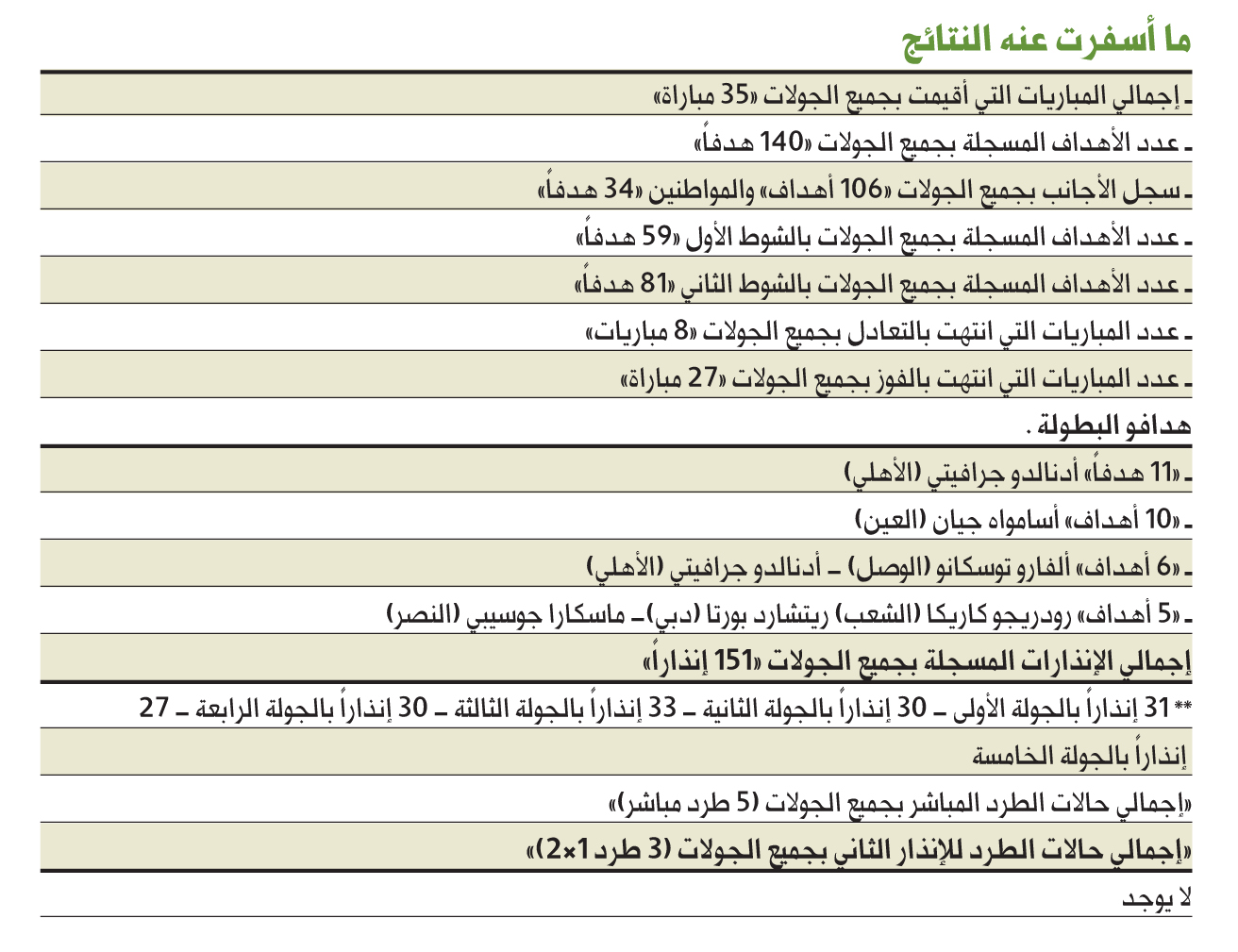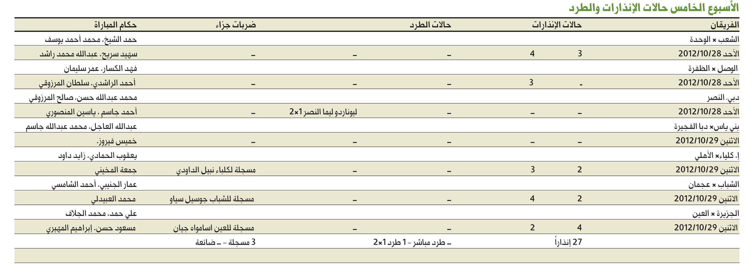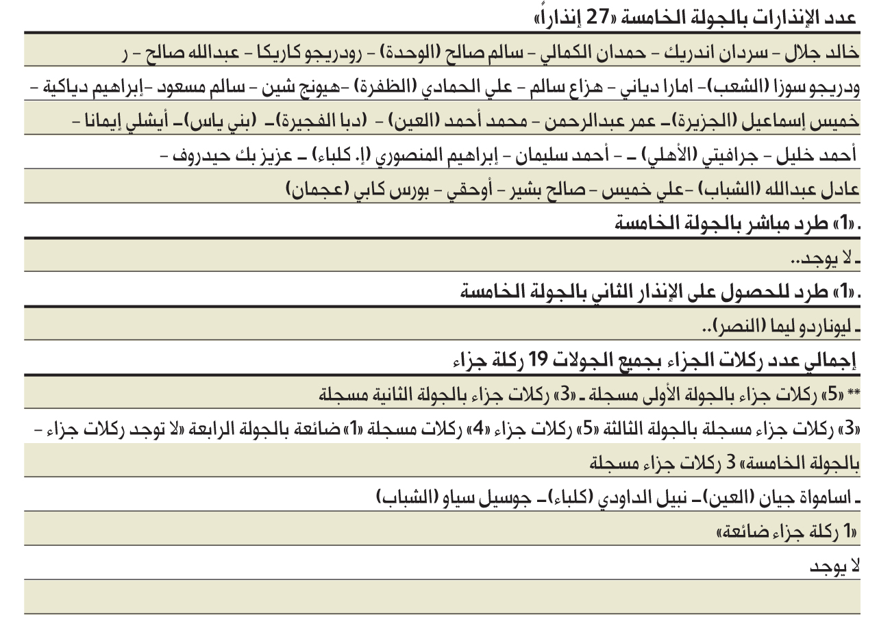 عدد الإنذارات بالجولة الخامسة "27 إنذاراً" (إحصائية)