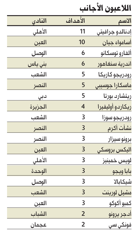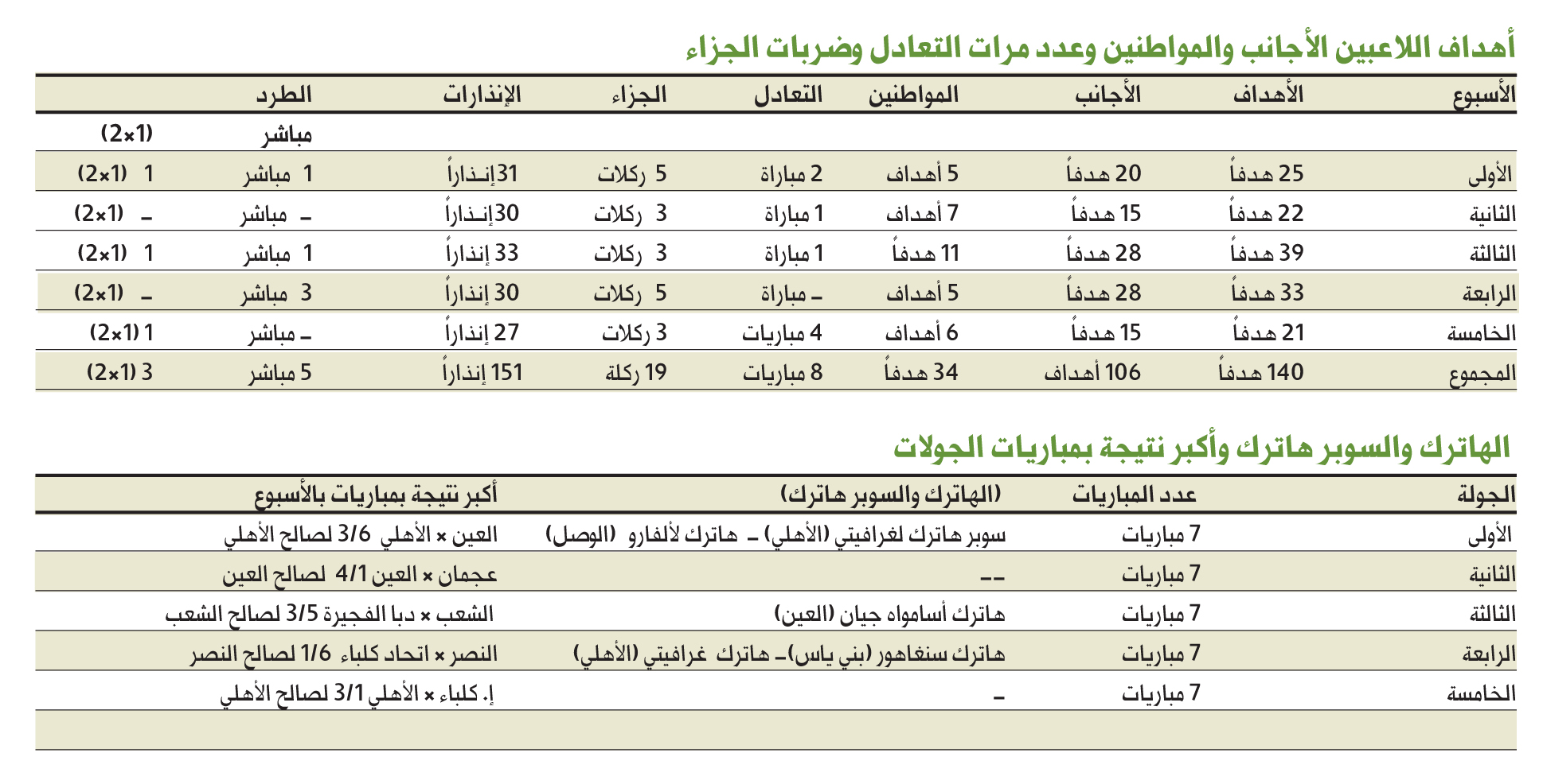 أهداف اللاعبين الأجانب والمواطنين وعدد مرات التعادل وضربات الجزاء (احصائية)