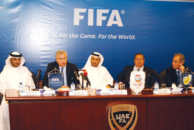 جاء ذلك في مؤتمر صحافي عقد ظهر أمس في مقر اتحاد الكرة في دبي، حضره يوسف السركال رئيس اتحاد الكرة وعبيد سالم الشامسي نائب رئيس اتحاد الكرة ومحمد بن بدوه مدير البطولة، وكل من رافائيل سيلغيرو ومصطفى فهمي واينياكي الفاريز ممثلي الاتحاد الدولي ويوسف عبد الله الأمين العام لاتحاد الكرة.