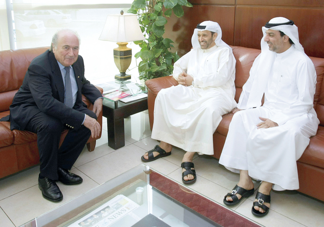 يستقبل جوزيف بلاتر رئيس الاتحاد الدولي لكرة القدم ظهر اليوم بمقر فيفا في زيوريخ، وفد اتحاد كرة القدم الذي يضم يوسف السركال رئيس الاتحاد والمرشح لمنصب رئيس الاتحاد الآسيوي، يوسف خوري رئيس لجنة التسويق، يوسف عبد الله الأمين العام، حيث تشمل المحادثات بين الطرفين، العلاقة بين كرة الإمارات والفيفا، واستضافة الإمارات لمونديال الناشئين تحت 17 عاماً في أكتوبر المقبل، إضافة إلى الملف الآسيوي الذي يتضمن، مصالح الكرة الآسيوية، وانتخابات الاتحاد الآسيوي التي ستجرى في أول مايو المقبل.