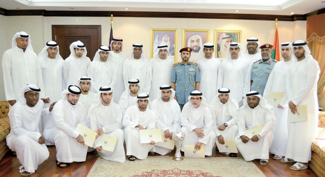 التقى اللواء الركن خليفة حارب الخييلي، وكيل وزارة الداخلية المساعد لشؤون الجنسية والإقامة والمنافذ بالإنابة، في مكتبه، أعضاء الجهازين الفني والإداري والحكام، الذين أسهموا بجهودهم المتميزة في إنجاح البطولة، والعاملين بالقطاع، وفريق الجنسية والإقامة والمنافذ لكرة القدم للصالات الحائز على المركز الأول في بطولة كأس سمو وزير الداخلية لكرة القدم للصالات للموسم الرياضي 2012 - 2013 في نسختها السادسة عشرة، والتي نظمها اتحاد الشرطة الرياضي واستضافتها القيادة العامة لشرطة رأس الخيمة.
