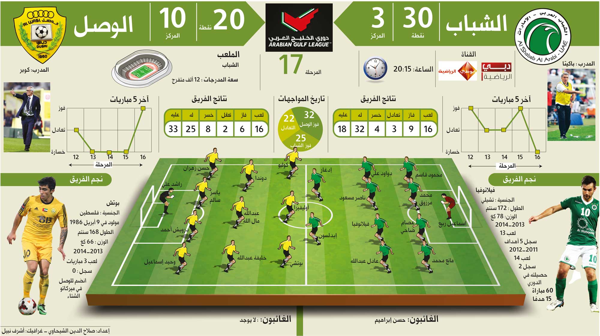ويحتل الشباب قبل لقاء اليوم المركز الثالث في لائحة الترتيب العام لفرق البطولة برصيد 30 نقطة، وهو يسعى جاهداً لاستعادة مركز الوصافة، ولكن بشرط اجتيازه محطة الوصل اليوم، وانتظار ما تسفر عنه مباراة صاحب المركز الثاني حالياً، الجزيرة في ذات الجولة.