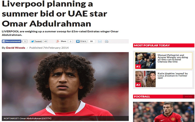 تخطط إدارة نادي ليفربول الانجليزي التقدم بعرض لضم عمر عبد الرحمن (عموري) لاعب فريق العين الاماراتي خلال فترة الانتقالات الصيفية وذلك حسب أحد الصحف البريطانية.
