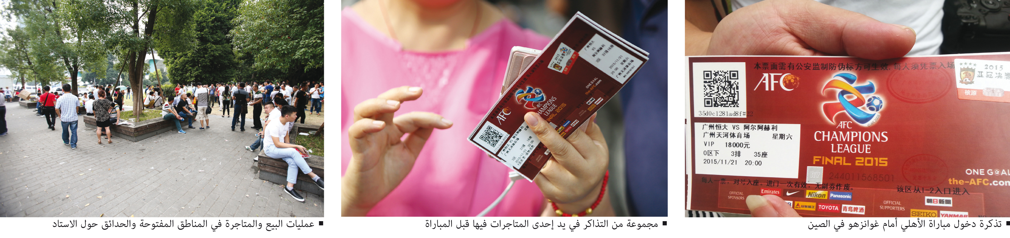 نشطت السوق السوداء في عملية بيع تذاكر نهائي دوري أبطال آسيا بين فريقي غوانزهو والأهلي بشكل مكثف قبل 24 ساعـة من بدايـة المباراة، وتحوّلت إحدى المناطق القريبة من الملعب الرئيس، الذي سيحتضن اللقاء غداً بمدينة غوانزو الصينية، إلى سوق تذاكر بأتم معنى الكلمة لا تمت للاحتراف بصلة نهائياً.