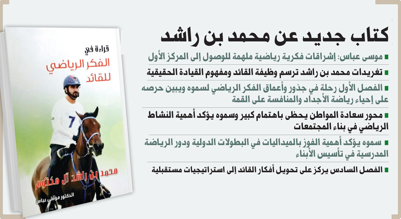 أعلن الدكتور موسى عباس الخبير الرياضي، أمس، في مؤتمر صحافي، عن صدور كتابه الجديد أمس، بعنوان «قراءة في الفكر الرياضي للقائد»، الذي يتناول جانباً من الفكر المستنير لصاحب السمو الشيخ محمد بن راشد آل مكتوم نائب رئيس الدولة رئيس مجلس الوزراء حاكم دبي، رعاه الله، فارس العرب.