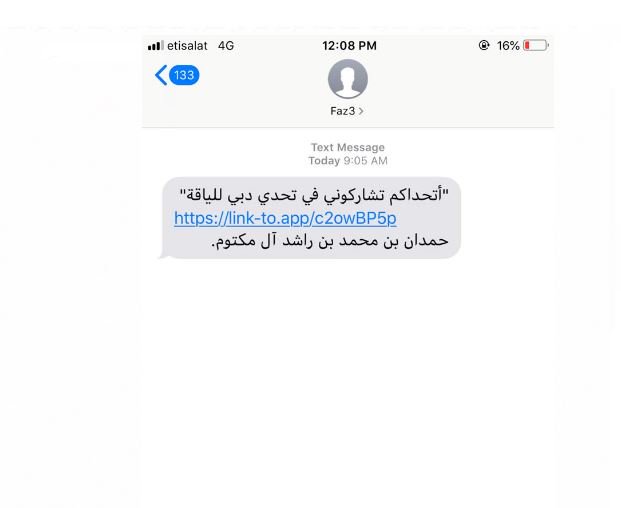 وضمت الرسالة رابطاً لتطبيق تحدي دبي للياقة البدنية.