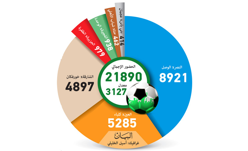 وكانت الإثارة حاضرة بالمدرجات في ثلاث مباريات بالجولة الأولى، بداية من ديربي بر دبي بين «العميد» و«الإمبراطور»، والتي شهدها 8921 مشجعاً، وهو الرقم الأعلى، والثانية كانت في ملعب العين في مباراته أمام كلباء المجتهد، وحضرها 5285 مشجعاً، أضفوا المتعة على المباراة، وتجاوب معهم اللاعبون بأداء مميز.