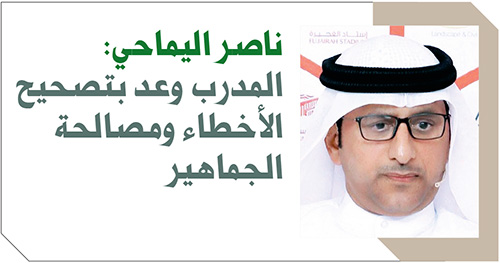 وعن الأداء المتراجع لعدد من أجانب الفريق، قال اليماحي: «اللاعبون المحترفون يحتاجون إلى وقت أطول للتقييم، وبالتأكيد لن تكون هناك انتقالات جديدة حالياً بغد غلق باب الميركاتو الصيفي، وعلينا الصبر حتى فترة الانتدابات الشتوية، وعلى ضوئها نقرر مصير الأجانب، وفي اعتقادي أن بقاء أو رحيل المحترفين الأجانب راجع إلى تقارير اللجنة الفنية التي ستقيّم عمل المحترفين».