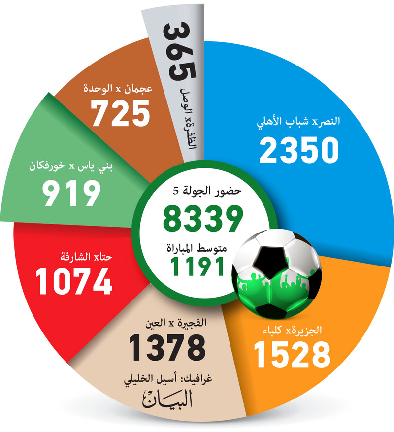 فمن غير المنطقي أن يشاهد مباراة الظفرة مع الوصل 356، وهي من المباريات المثيرة، والتي نجح الوصل في تحقيق أول فوز له، بعد سلسلة هزائم أثارت غضب جماهيره، وأن يشاهد مباراة عجمان مع الوحدة، وهي من المباريات الجيدة، عدد 725 مشجعاً فقط، وأن يتابع 919 مشجعاً مباراة بني ياس مع خورفكان، هذه كلها أرقام صادمة، لا تليق بقيمة منافسات الدوري والإثارة التي تشهدها مبارياته، منذ انطلاقة الموسم الحالي.