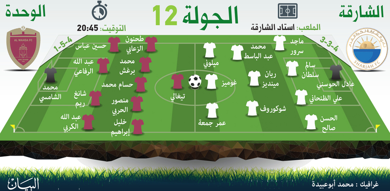يحل فريق الوحدة ضيفاً على نظيره الشارقة في التاسعة إلا ربعاً من مساء اليوم ضمن منافسات الجولة 12 لدوري الخليج العربي، ويسعى أصحاب الأرض إلى استعادة الصدارة التي فقدها الفريق في الجولة الماضية لحساب شباب الأهلي الذي اعتلى الصدارة برصيد 26 نقطة وبفارق نقطتين عن الشارقة الوصيف «24» نقطة.