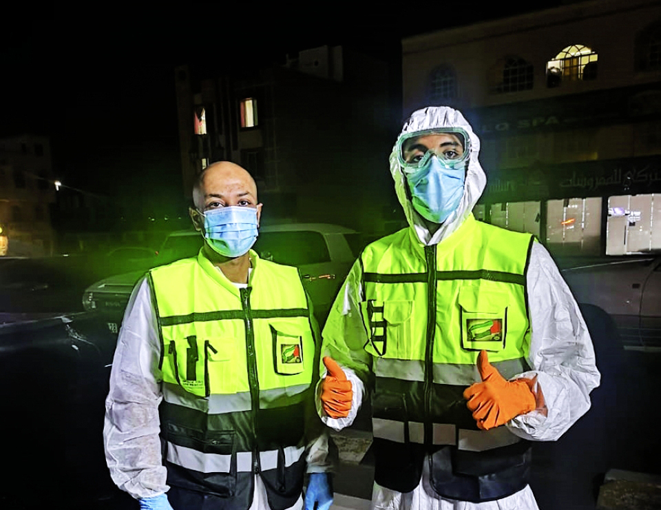 شارك خميس إسماعيل لاعب الوحدة في حملة لتعقيم وتطهير طرق وشوارع رأس الخيمة، ضمن الخطة الشاملة، التي تستهدف المرافق والأماكن العامة في الإمارة، خلال برنامج التعقيم الوطني، الذي أطلقته الإمارات، بهدف الحفاظ على صحة وسلامة المواطنين والمقيمين، للوقاية من فيروس «كورونا»، وإضافة إلى مشاركته في حملة التعقيم، قام خميس إسماعيل بتوفير وجبات مجانية، من خلال مطعمه «فريج أشحفان» للعاملين في خط الدفاع الأول ضد فيروس «كورونا» في رأس الخيمة، تعبيراً عن تضامنه الكامل في المعركة ضد الفيروس، وتطوع عدد من الرياضيين للوجود في خط الدفاع الأول في مواجهة فيروس «كورونا»، يتقدمهم الحكم الدولي في كرة القدم، الدكتور عمار الجنيبي (طبيب أسنان)، الذي ترك عيادته، وانضم إلى مراكز المسح الطبي في أبوظبي، للمشاركة في عمليات الكشف الطبي على مرضى فيروس «كورونا» المستجد (كوفيد 19)، وبدر حارب لاعب الوصل السابق، الذي تطوع للعمل في مركز الفحص بنادي النصر.