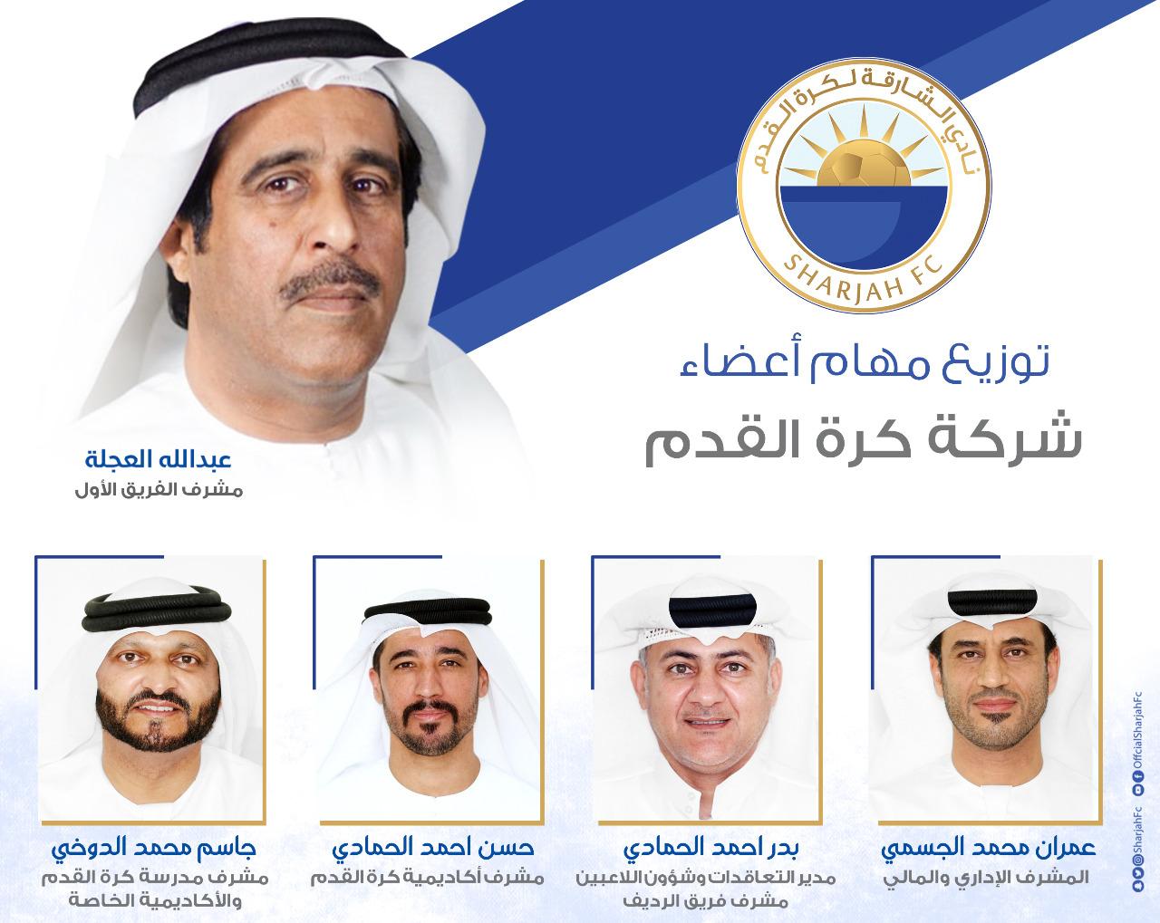 ورحب العجلة بجميع الأعضاء متمنياً التوفيق للجميع وأن يكون شعارهم في المرحلة المقبلة هو التفاني لخدمة النادي والعمل بجد واجتهاد، وتم خلال الاجتماع توزيع المهام الإدارية على أعضاء شركة كرة القدم حيث سيشغل عبدالله العجلة منصب رئيس شركة كرة القدم ومشرف الفريق الأول، فيما سيكون عمران الجسمي المشرف الإداري والمالي، وتم اختيار بدر أحمد مديراً للتعاقدات وشؤون اللاعبين - مشرفاً لفريق الرديف فيما أُسندت مهمة مشرف أكاديمية كرة القدم إلى حسن أحمد وسيشغل جاسم الدوخي مشرفاً لمدرسة كرة القدم والأكاديمية الخاصة، كما تم مناقشة عدة ملفات مهمة تخص شركة كرة القدم. وتطرق أعضاء مجلس إدارة شركة الشارقة لكرة القدم إلى أمور واحتياجات الفريق الأول للفترة القادمة والإطلاع على عقود بعض اللاعبين المواطنين والأجانب كما تم استعراض تقرير مدرب الفريق الأول عبدالعزيز العنبري ونتائج اجتماعه الأخير مع رئيس الشركة.
