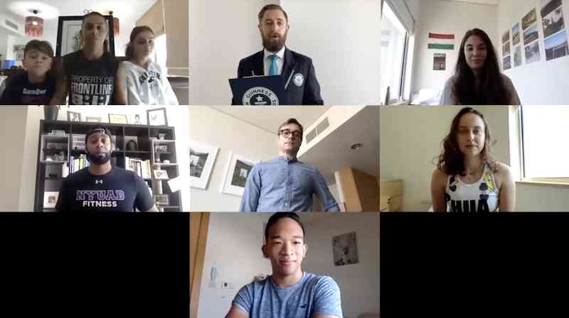 وضم الفريق الفائز، الذي يتكون من ستة رياضيين من جامعة نيويورك أبوظبي، كلاً من إيفا كلارك، وإيفان كامبونوغارا، ودانيل غيل، إلى جانب ثلاثة من الخريجين هم تيريزا بتروفيكوفا، وبراندون تشين لوي، وآنا إردي.