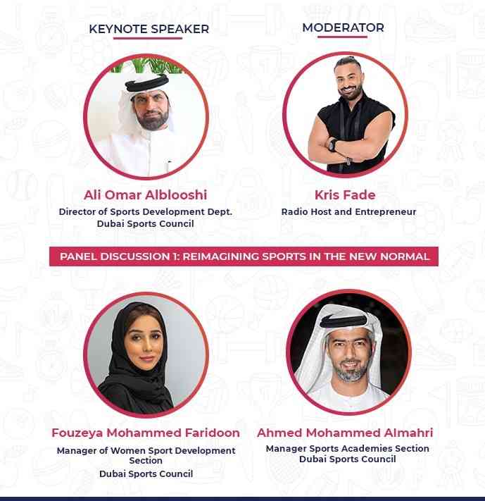 فيما يتحدث في الجلسة الثانية عدد من مدربي الأكاديميات ليمثلوا نماذج للرياضيين ويناقشوا سبل إقامة المنافسات الرياضية، ويتحدث في الجلسة الثالثة عدد من الرياضيين الناشئين والأطفال الذين سيستعرضون أفكارهم ومقترحاتهم بخصوص الرياضة في المرحلة المقبلة، ويتحدث في الجلسة الرابعة شاجي الملك مؤسس دوري تي 10 للكريكت الذي يتحدث عن التصورات الجديدة لرياضة الكريكت، كما يناقش وسائل تحفيز الأطفال على ممارسة الرياضة والنشاط البدني لمدة 60 دقيقة يوميًا سواء في المنزل أو الصالات أو في الأماكن المفتوحة، وفي الجلسة الختامية يفتح النقاش لممثلي الأكاديميات الرياضية لبحث التحديات التي تواجههم وكيفية تخطيها في ظل جائحة كورونا.