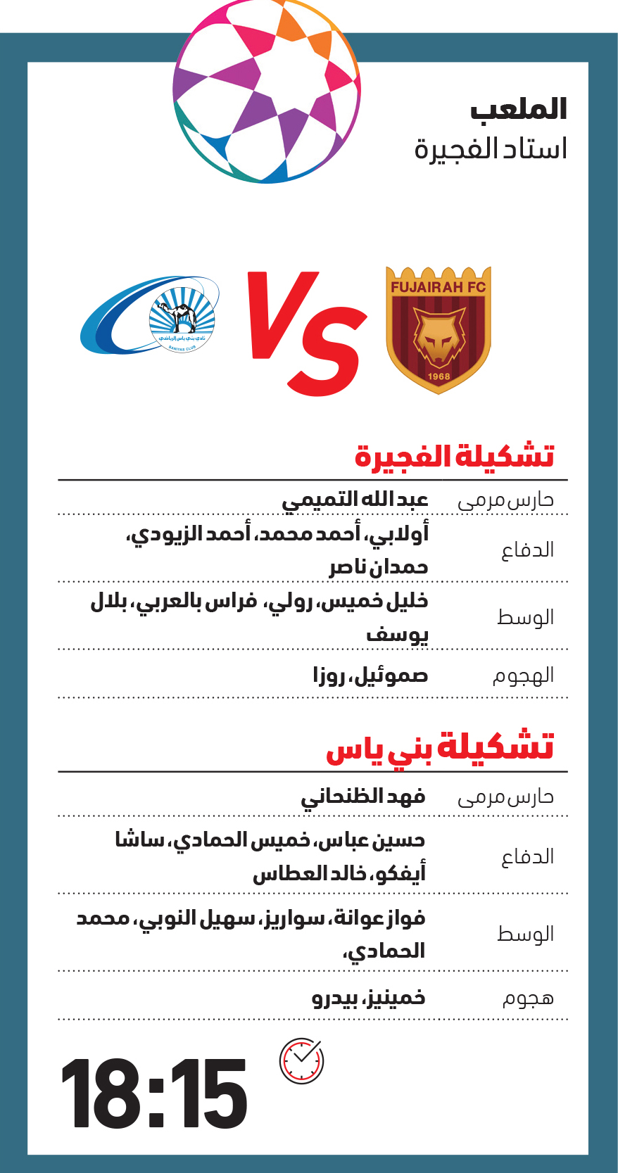 يبحث الفجيرة عن تحقيق فوزه الأول في المسابقة عندما يستضيف بني ياس في السادسة والربع مساءً ضمن ثاني جولات دوري الخليج العربي.