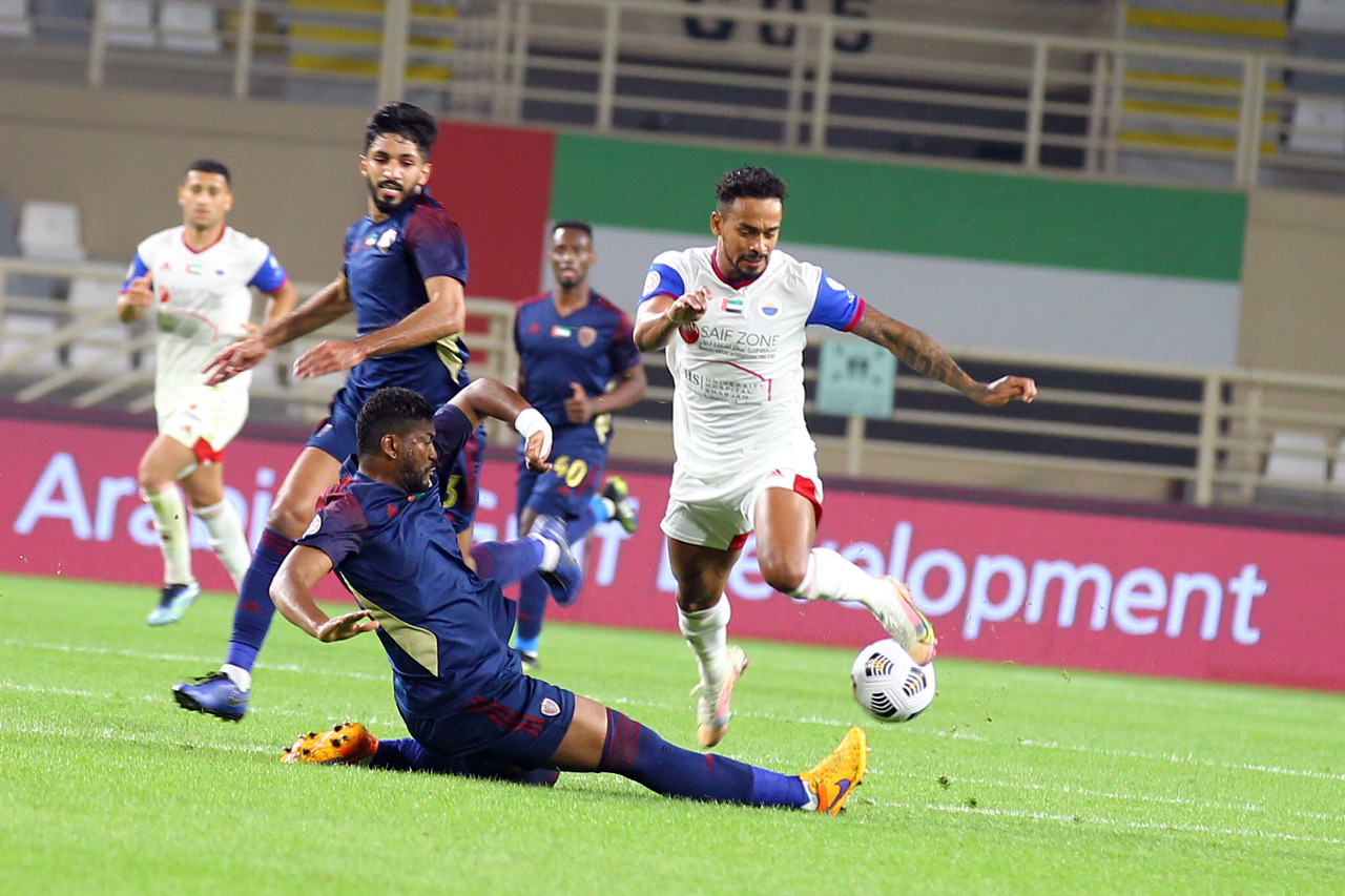 تقاسم الفريقين شوطي اللقاء بعدما سيطر الشارقة على شوط المباراة الأول بالكامل وفرض أفضليته على أصحاب الأرض، إذ كان "الملك" الأكثر محاولات على المرمى وصاحب المبادرة الهجومية، حيث جاء أول تهديد عن طريق تسديدة من كايو في الدقيقة 14 ولكنها ارتدت من العارضة.