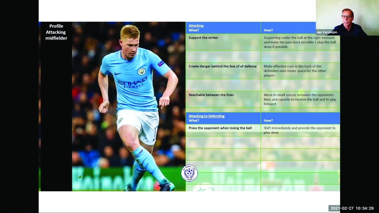 وقدم يان فريسلاين المدير الرياضي في نادي النصر، محاضرتين أقيمتا السبت الماضي لمدربي الفئة العمرية من 13 إلى 18 سنة، وتحدث في المحاضرة الأولى عن النموذج الأمثل لنادي كرة القدم، فيما تناولت المحاضرة الثانية أسلوب ومبادئ اللعب، وستقام السبت المقبل في الساعة العاشرة صباحاً، عدة محاضرات، حيث يقدم فيها هشام بومبار المدير الفني لأكاديمية حتا لكرة القدم، محاضرتين، يتحدث في المحاضرة الأولى عن فلسفة اللعب، وفي الثانية عن التخطيط وبرامج التدريبات، وتستهدف المحاضرتان مدربي فئات 13-18 سنة، كما يحاضر أيضاً في ذات الوقت، يسري بوزيان المشرف الفني في نادي شباب الأهلي، ويتناول موضوع العمل المهاري في مدرسة كرة القدم، والتي تستهدف مدربي فئات 6 – 12 سنة.