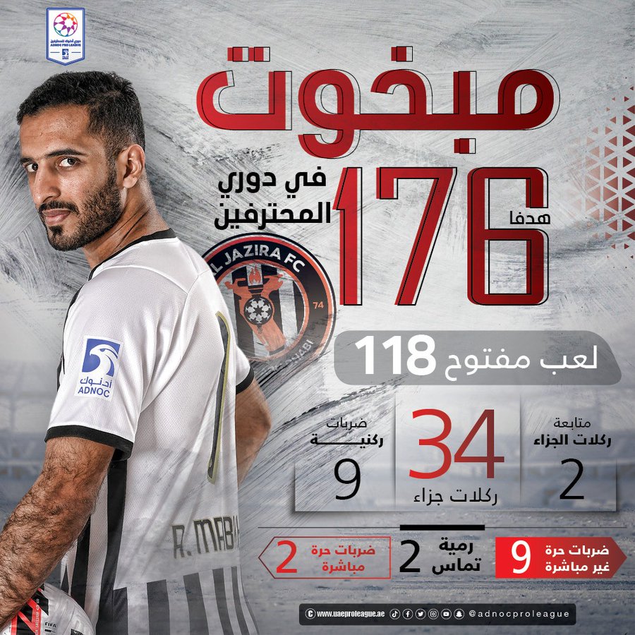 سجل مبخوت هدف فريقه اليوم أمام الظفرة في الدقيقة 48 من ركلة جزاء ، في المباراة المؤجلة من الجولة الـ14 من دوري أدنوك للمحترفين.