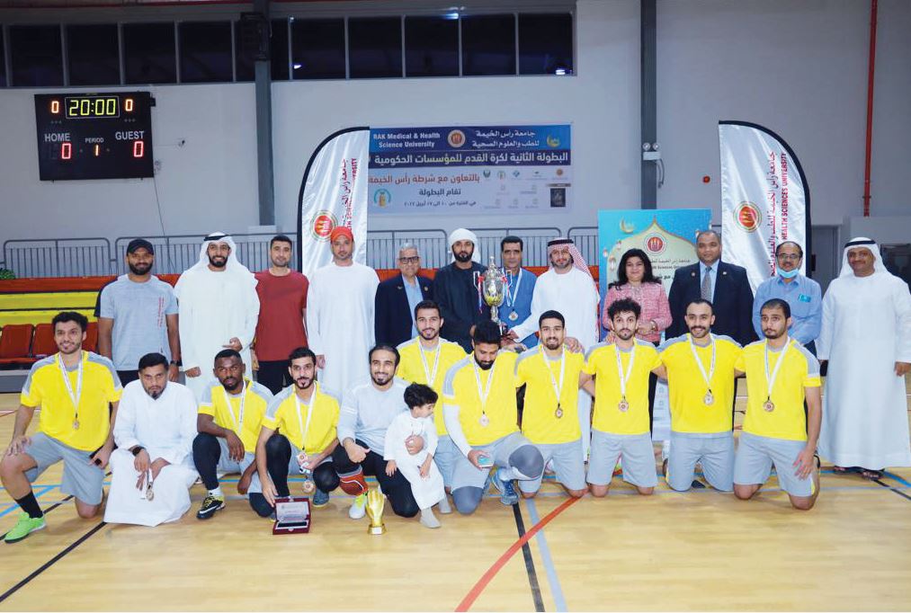 تٌوج فريق الدفاع المدني رأس الخيمة، بلقب النسخة الثانية من بطولة المؤسسات الحكومية لكرة القدم التي نظمها مكتب شؤون الطلاب بجامعة رأس الخيمة للطب والعلوم الصحية بمشاركة 8 فرق، وجاء فوز الدفاع المدني، بعد فوزه على فريق محاكم رأس الخيمة 8 - 2، خلال مباراة أكد فيها الدفاع المدني أحقيته باللقب، وسط احتفالات اللاعبين والجهازين الفني والإداري.