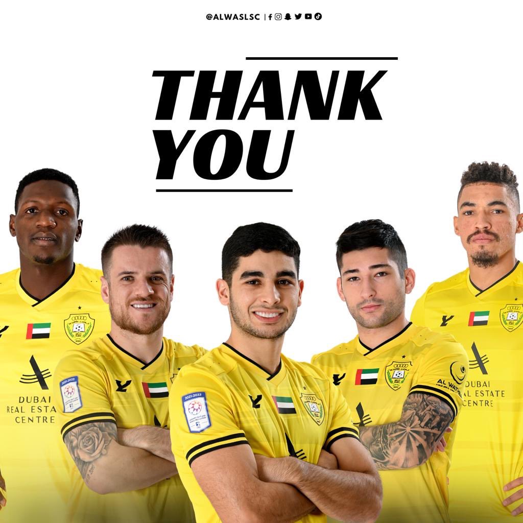 وجهت إدارة شركة الوصل لكرة القدم، الشكر لخمسة لاعبين أجانب، لعبوا لفريق الكرة الأول على سبيل الإعارة حتى نهاية موسم 2021-2022، في إشارة إلى انتهاء العلاقة بين الطرفين بكل الود، مع تمني التوفيق لهم جميعاً في مشوارهم المقبل.