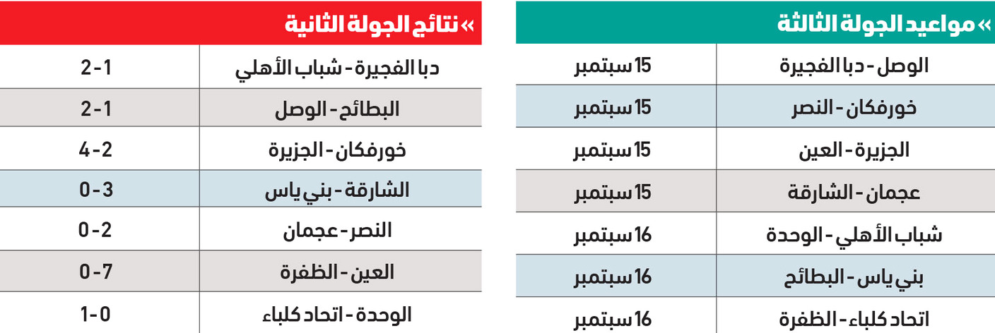 باستثناء فريق الوحدة، أحد كبار دوري الإمارات، والذي تجرع مرارة الخسارة أمام ضيفه اتحاد كلباء، فإن أقرانه الكبار الستة، قد نجحوا في الظفر بالنقاط الثلاث كاملة في الجولة الثانية من البطولة، ما جعل «ميزان» الدوري واقعياً إلى حد كبير، بعدما اعتلى البطائح قمته في الجولة الأولى في سابقة تاريخية تُحسب لفريق صاعد لأول مرة إلى دوري المحترفين.