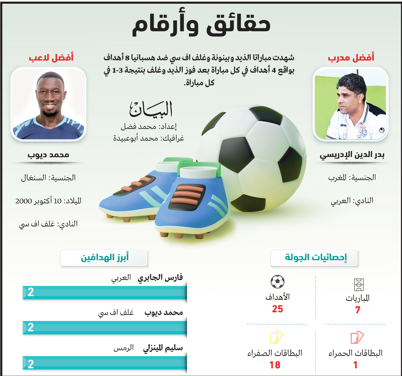 تتجه الأنظار السبت المقبل لمباراة قمة ضمن الجولة الثانية، وهي المباراة التي تجمع الهابطين من دوري المحترفين، وهما العروبة الذي يستقبل ضيفه الإمارات بقيادة مدرب العروبة السابق التونسي فتحي العبيدي، والذي سيأتي إلى ملعب خليفة بن زايد، بنادي العروبة، بهدف تغيير الصورة التي ظهر عليها فريقه الإمارات في الجولة الأولى، بعد التعادل مع سيتي بهدف، فيما ستكون بقية المواجهات متوازنة وتجمع هسبانيا بالفجيرة والعربي ضد بينونة وسيتي في مواجهة غلف اف سي، ومسافي ضد الحمرية، والرمس يستقبل ضيفه دبا الحصن، والتعاون ضد مصفوت، والذيد يواجه الجزيرة الحمراء.