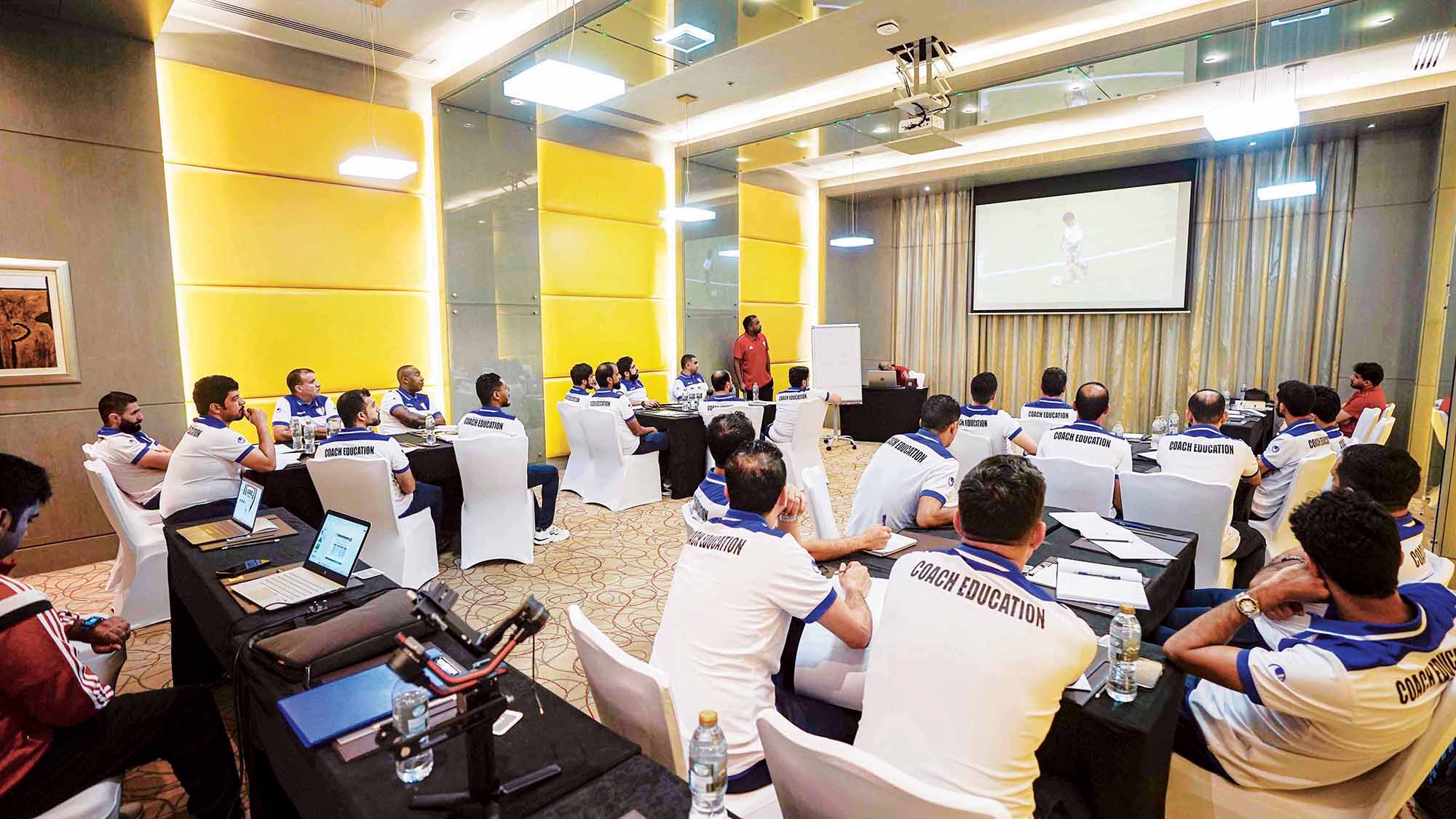 وتتناول الدورة التي يُقدمها كل من، عبدالرحمن الحداد، وجمال الحساني المحاضرين المعتمدين لدى الاتحاد القاري، ومحمد آل علي المحاضر المساعد، مجموعة من المحاضرات النظرية والتطبيقية التي تتضمن أسس بناء وتدريب فريق البراعم من 6 إلى 12 عاماً، وتعليم اللاعب مهارات السيطرة على الكرة والتمريرات القصيرة والطويلة والمساندة والمراوغة بالكرة.