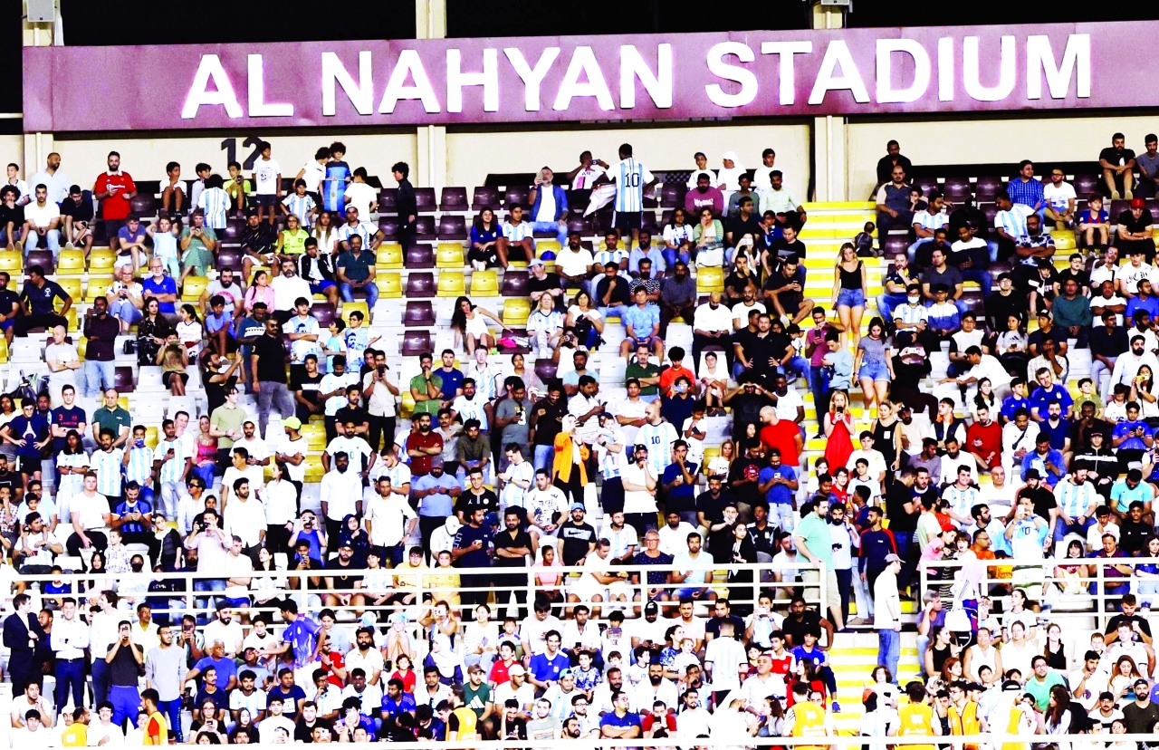 ويلتقي المنتخب الأرجنتيني مع نظيره الأبيض الإماراتي في السابعة والنصف مساء غد على ملعب استاد محمد بن زايد في مباراة ودية تعد البروفة الأخيرة للأرجنتين قبل المونديال. وأدى المنتخب الأرجنتيني حصة تدريبية مفتوحة أمام الجماهير، مساء أمس، على ملعب استاد آل نهيان بأبوظبي بمشاركة النجم ليونيل ميسي، الذي ألهب حماس الجماهير الغفيرة التي حرصت على الحضور للمدرجات لمشاهدة نجمها المفضل. وشهدت التدريبات حضور أكثر من 11 ألف متفرج لمتابعة مران المنتخب الأرجنتيني وليونيل ميسي، إذ حرصت الجماهير على تحية النجم الأسطوري والهتاف باسمه طوال التدريبات. وبدأ مران منتخب الأرجنتين بتدريبات بدنية خفيفة تفادياً لإرهاق اللاعبين، خصوصاً وأن عدداً منهم وصل أمس رفقة ميسي، وهم أنخيل دي ماريا وليوناردو باريديس، ثم ركز المدير الفني ليونيل سكالوني على الجوانب التكتيكية وتدريبات بالكرة، واختتم المران بالتسديد على المرمى. وخاض الرباعي باولو ديبالا ولاوتارو مارتينيز وخواكين كوريا ونيكولاس جونزاليس تدريبات منفردة في ظل وصولهم قبل نهاية التدريبات، إذ وصل أعضاء المنتخب إلى أبوظبي على دفعات، كما خاض تاغليافيكو لاعب ليون الفرنسي تدريبات منفردة لمعاناته من إصابة سابقة.