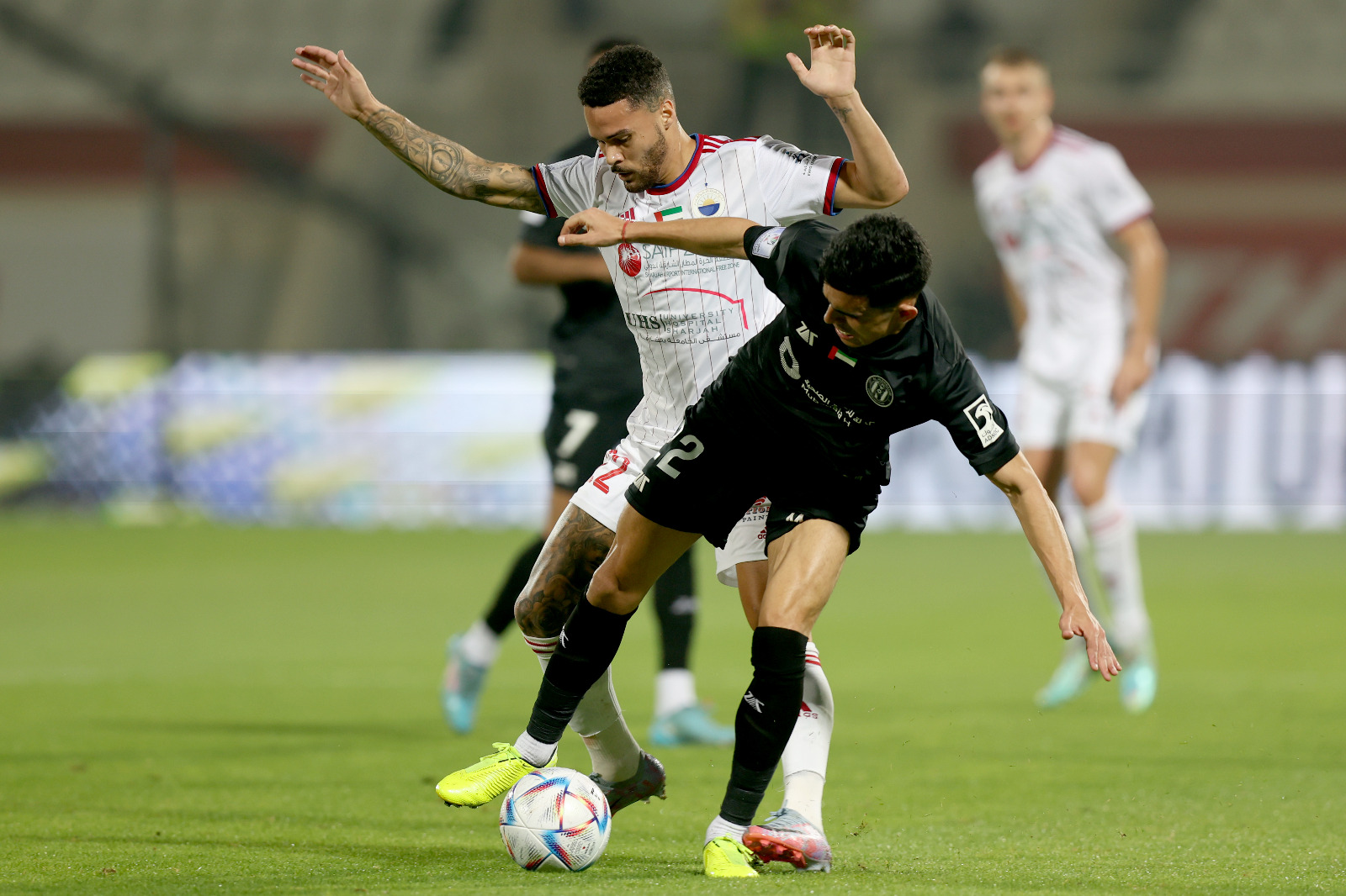 وشهدت الدقيقة 26 أخطر هجمة للشارقة عن طريق عرضية عثمان كمارا حولها المدافع خليفة الحمادي بالخطأ تجاه مرماه ارتدت من العارضة وفي الدقيقة 42 هجمة مركبة للشارقة أنقذها علي خصيف في المرة الأولى ثم ارتدت لدجانيتي وأنقذها ميلوش إلى ركنية، وفي الدقيقة 45 علي خصيف واصل تألقه وأنقذ تسديدة خالد الظنحاني ثم ارتدت لكايو لوكاس وأنقذها من جديد خصيف إلى ركنية، ونجح الشارقة في افتتاح التسجيل في الدقيقة الأخيرة للوقت البديل «45+4» عن طريق لوان بيريرا مستفيداً من عكسية دجانيني لينتهي عليه الشوط الأول.