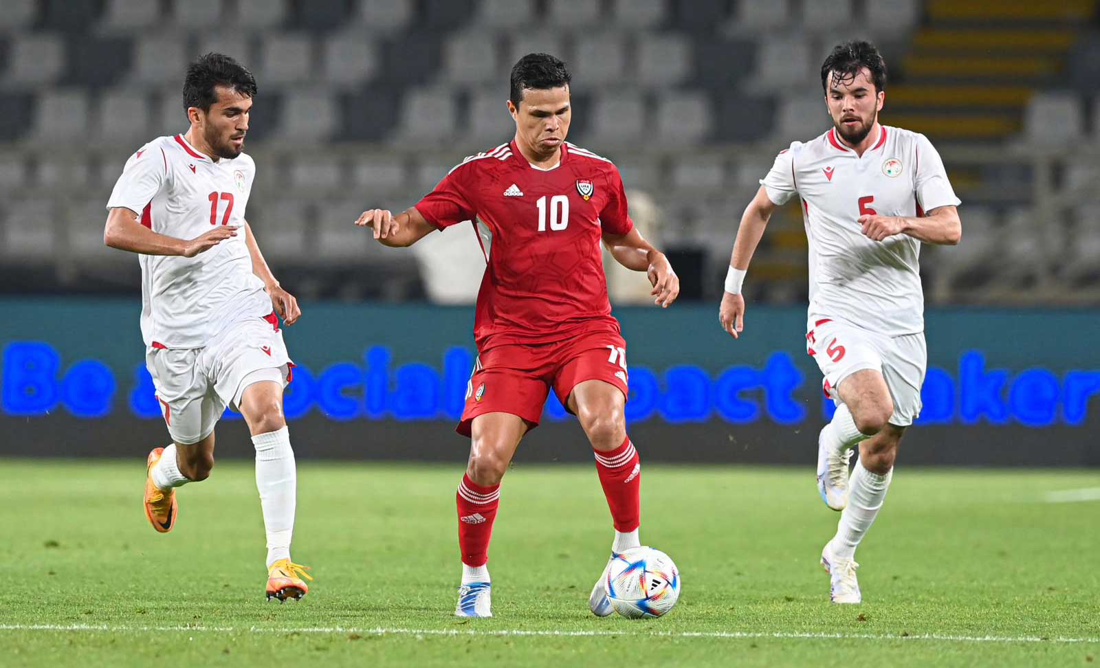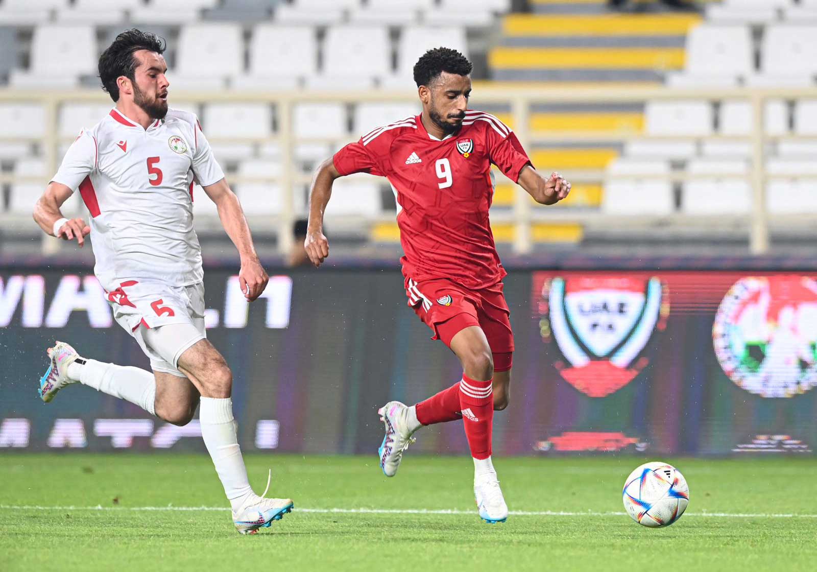 تعادل منتخبنا الوطني الأول لكرة القدم سلبياً مع نظيره منتخب طاجيكستان، في المباراة الودية التي جمعتهما، مساء أمس، على استاد آل نهيان، ضمن معسكر «الأبيض» في أبوظبي، استعداداً لنهائيات كأس آسيا 2023 التي تقام في قطر يناير من العام المقبل، والتصفيات المؤهلة لنهائيات كأس العالم 2026.