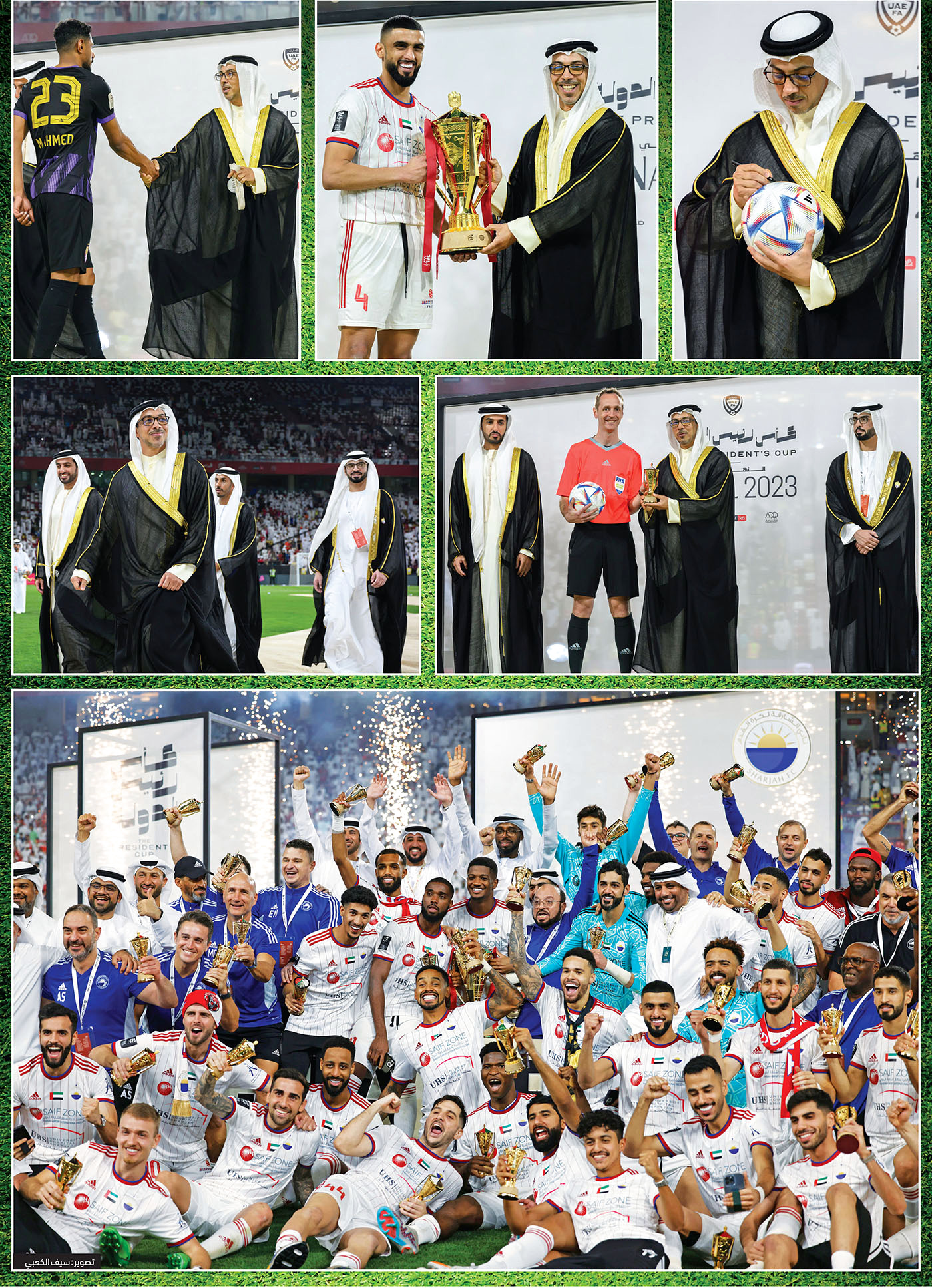 شهد سمو الشيخ منصور بن زايد آل نهيان نائب رئيس الدولة، المباراة النهائية لبطولة كأس صاحب السمو رئيس الدولة، التي جمعت فريقي الشارقة والعين في استاد محمد بن زايد في أبوظبي.