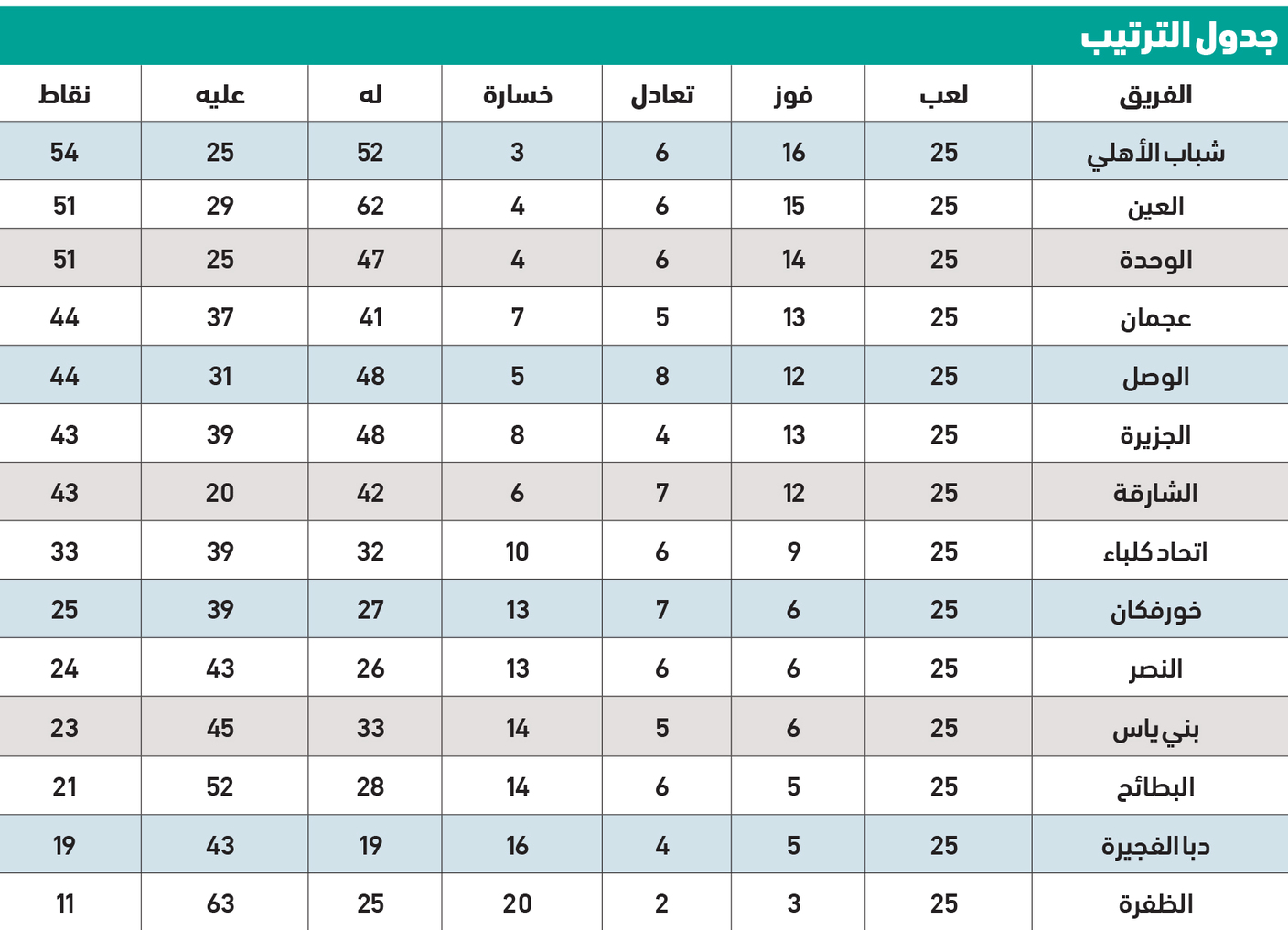وقال عبد العزيز إن تتويج شباب الأهلي بدرع الدوري، كان مسألة وقت فقط لا غير، والجميع كان يعلم ذلك، بعدما خدم نفسه بنفسه، وفي الوقت نفسه، لم يستفد مطاردوه من تعثر الفريق بالتعادل مع النصر والوصل بنتيجة واحدة 2-2 في الجولتين 23 و24، وجاء الانتصار على بني ياس، متوقعاً قبل الجولة 25، للروح القتالية وجماعية الأداء المعروفة عن لاعبي شباب الأهلي في المواجهات الحاسمة، والتي ساعدتهم على التعادل في الدور الثاني خارج أرضهم، مع منافسيهم المباشرين العين والوحدة بنتيجة واحدة 1-1، والشارقة 0-0، والفوز على الجزيرة 3 - 2.