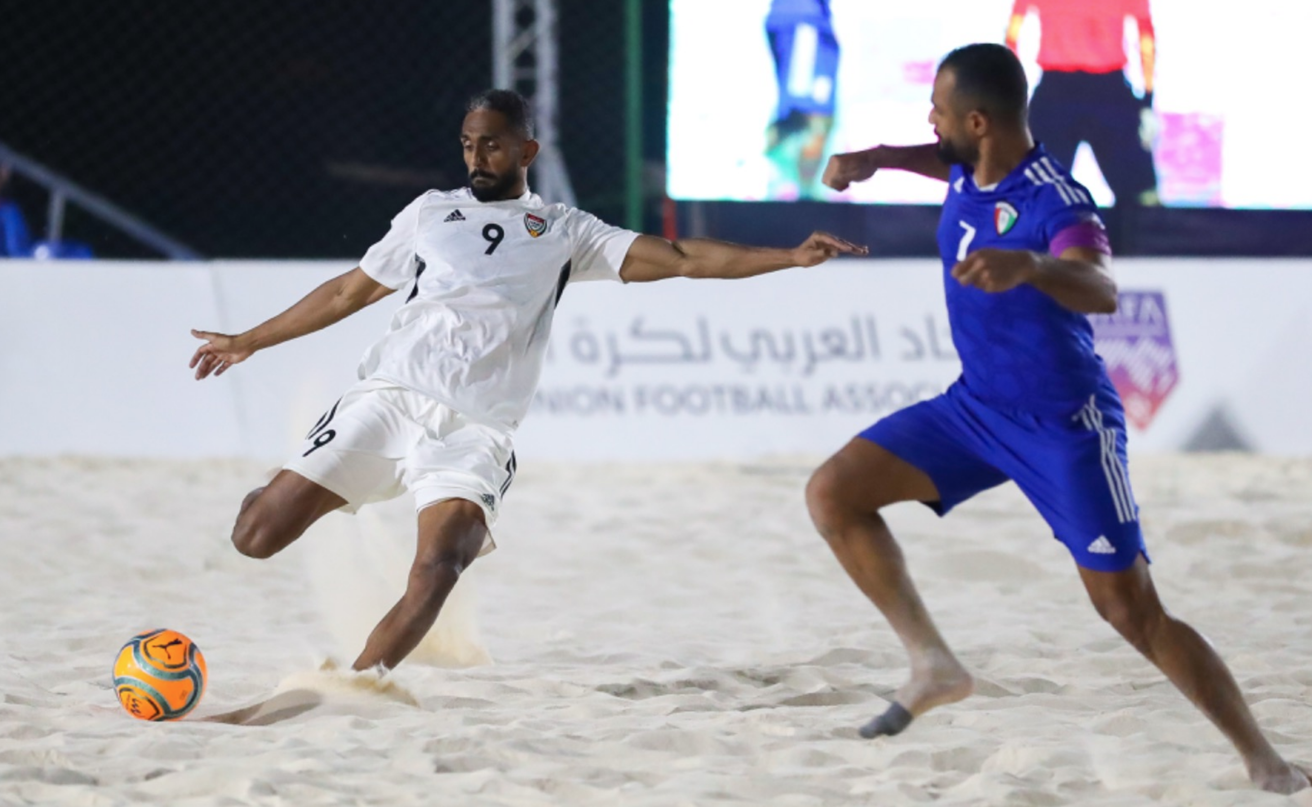 فاز منتخب الإمارات لكرة القدم الشاطئية، على نظيره الكويتي 7-4 في ختام منافسات الدور الأول لبطولة كأس العرب، المقامة حالياً منافساتها بمدينة جدة السعودية.