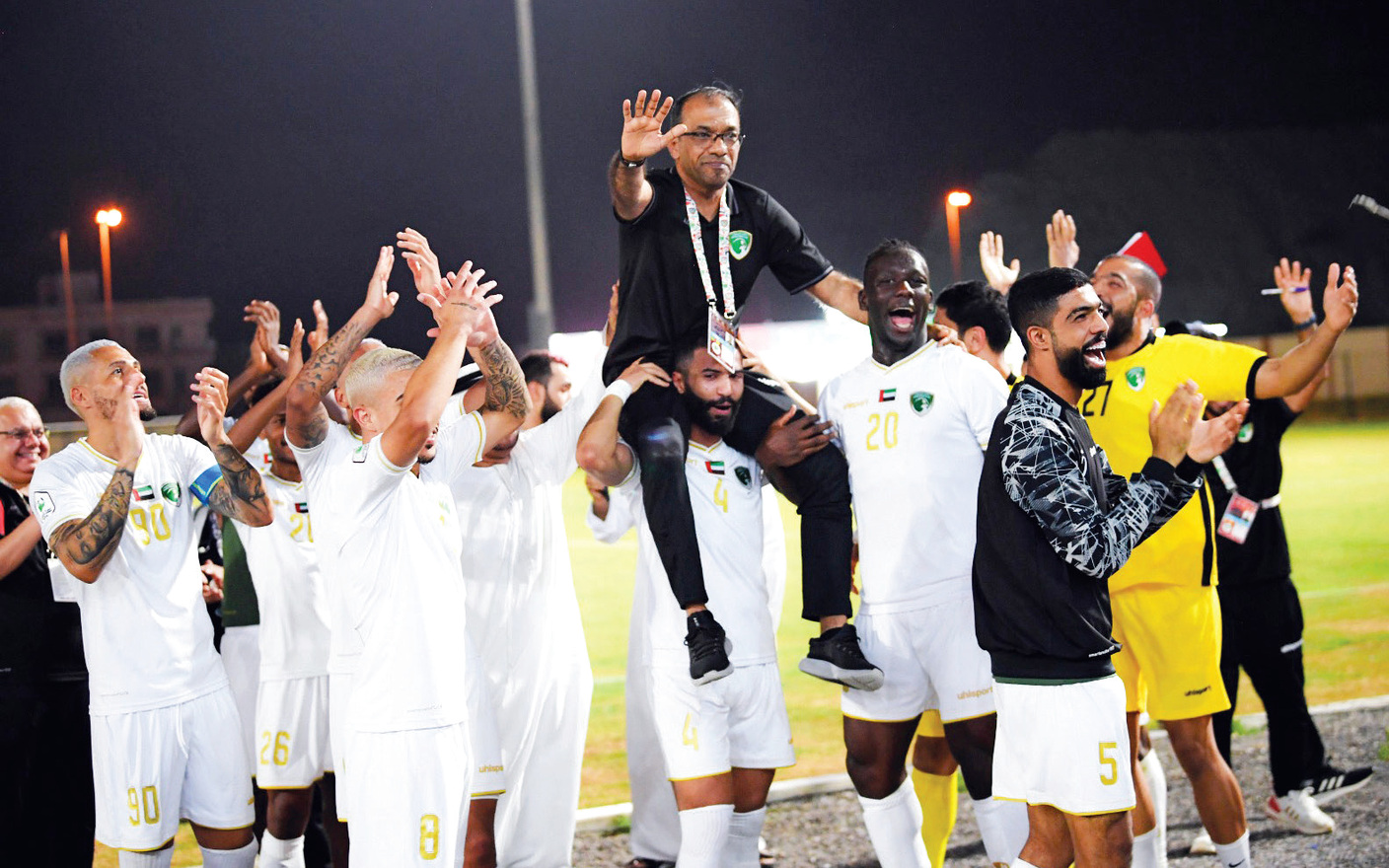 تواصلت احتفالات نادي الإمارات بالصعود إلى دوري أدنوك للمحترفين حتى وقت متأخر من الليل، ابتهاجاً بهذه المناسبة وذلك بعد فوز «الصقور» على فرسان هيسبانيا بنتيجة 1/3 ليختتم الفريق مشواره في دوري الدرجة الأولى برصيد 71 نقطة، ويتأهب للمرحلة المقبلة التي تعد الأهم في تاريخ النادي ألا وهي التهيؤ الجيد لمباريات دوري أدنوك للمحترفين.