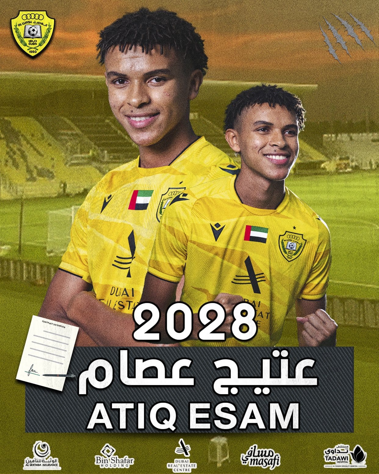 وبدأت المرحلة بتوقيع النجم الشاب عتيق عصام، عقده الاحترافي الأول، والممتد حتى العام 2028 مع ناديه الأم، الوصل، لتمثيل فريق النادي الأول، أو تحت 21 عاما في الموسم الجديد.
