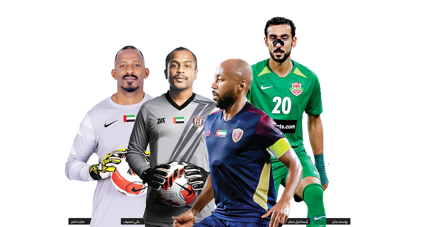 وعلي خصيف حارس الجزيرة، وعلي الحوسني حارس عجمان، وزميله راشد عبدالله، وعامر مبارك لاعب خورفكان، وعمر كل منهم 35 عاماً، والحارس أحمد محمود ديدا، وإسماعيل الحمادي لاعبي خورفكان، ويوسف أحمد لاعب عجمان، وفواز عوانة لاعب بني ياس، وعمر كل منهم 34 عاماً.