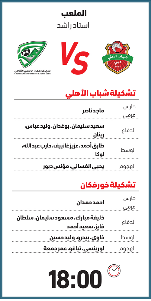 ويتطلع خورفكان للعودة من دبي بنتيجة إيجابية أقلها التعادل إن لم يكن الفوز أمام بطل الدوري، لكن المهمة لن تكون سهلة بملعب راشد عقب خروج الفرسان من تمهيدي دوري أبطال آسيا أمام النصر السعودي وستزيد هذه المعطيات من صعوبة وحرارة اللقاء.