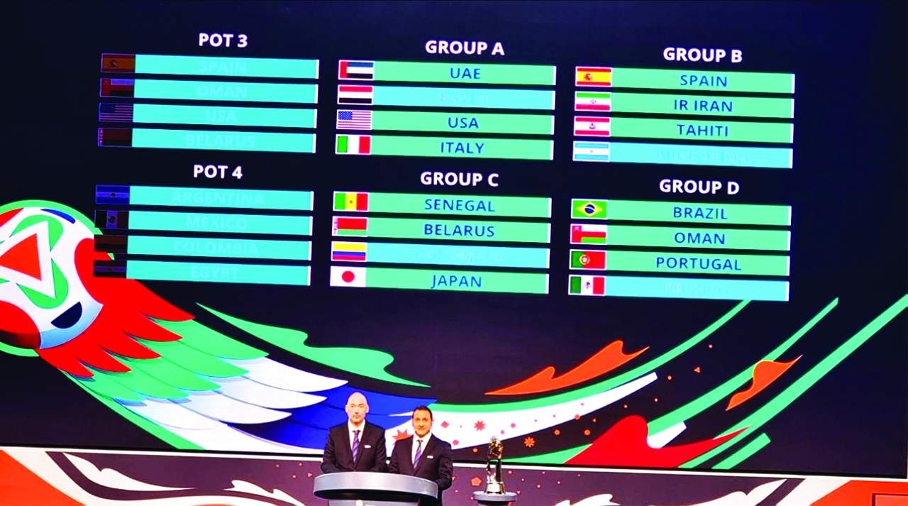 أسفرت قرعة كأس العالم لكرة القدم الشاطئية «الإمارات 2024» التي تستضيفها دبي في فبراير المقبل عن وقوع منتخب الإمارات في المجموعة الأولى إلى جانب كل من مصر وأمريكا وإيطاليا، وبلعب منتخبنا اولى مبارياته مع المنتخب المصري 15 فبراير ثم مع أمريكا وايطاليا يومي 18 و 21 منه،حضر مراسم القرعة الشيخ راشد بن حميد النعيمي، نائب رئيس اللجنة الأولمبية ، رئيس اللجنة المنظمة العليا للبطولة، وعمر المهيري عضو مجلس إدارة اتحاد الكرة نائب رئيس اللجنة المنظمة وسعيد حارب أمين عام مجلس دبي الرياضي نائب رئيس اللجنة المنظمة للبطولة،وجاءت منتخبات إسبانيا وإيران وتاهيتي والأرجنتين بالمجموعة الثانية، والسنغال وببلاروسيا وكولومبيا واليابان بالثالثة، والبرازيل وعمان والبرتغال والمكسيك بالرابعة شارك في مراسم القرعة التي أقيمت في مكتبة محمد بن راشد في دبي بخيت سعد لاعب منتخبنا، وحضرها هشام الزرعوني وعبد المحسن الدوسري وفهد الحوسني وأمل بوشلاخ وإبراهيم النمر أعضاء مجلس إدارة الاتحاد ومحمد بن هزام الأمين العام للاتحاد مدير البطولة، وعلي عمر مدير إدارة الفعاليات الرياضية بالمجلس.