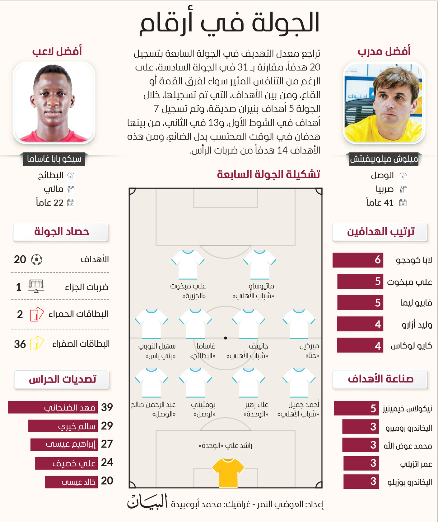 أكد نور الدين العبيدي المحلل الكروي، أن تراجع معدل التهديف في الجولة السابعة لدوري أدنوك للمحترفين إلى 2.8 هدف بعد تسجيل 20 هدفاً، متراجعاً عن المعدل العام للدوري وهو 3.5 أهداف، يعود إلى الحسابات التكتيكية الدفاعية تحسباً للخسارة، بعد أن بدأت ملامح المنافسة تتشكل سواء بالنسبة للمنافسة على البطولة أم ضمان البقاء، موضحاً أن لعبة الكراسي الموسيقية على الصدارة سوف تتواصل لقوة التنافس بين الفرق.