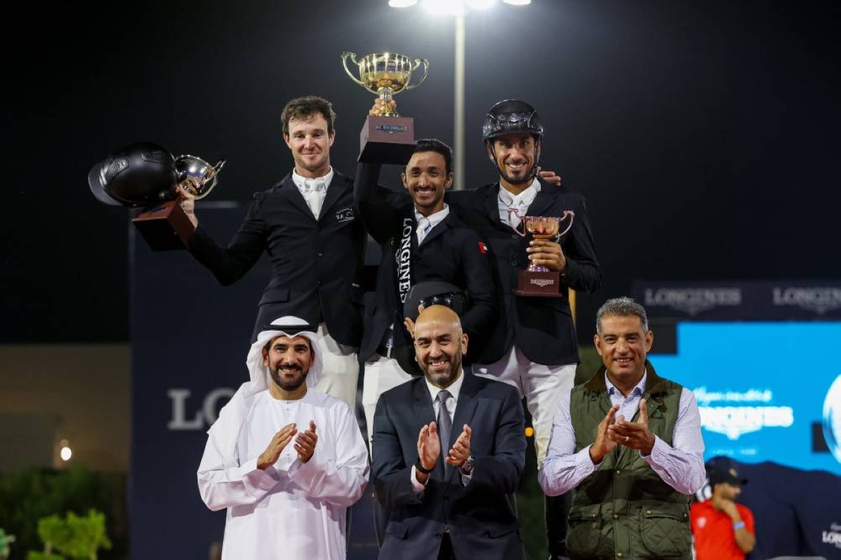 وشهدت منافسة الجائزة الكبرى، التي صُمم مسارها بارتفاع حواجز بلغ 155 سم وتطلب تنفيذ 16 قفزة عبر 13 حاجزاً، صراعاً فنياً عالياً بمشاركة 42 فارساً وفارسة، نجح ستة منهم فقط في إكمال الجولة الرئيسة دون أخطاء، ليتجدد التنافس بينهم في جولة التمايز التي أكملها ثلاثة فرسان فقط بسجل نظيف، حيث دخل المرزوقي آخر المشاركين في التمايز برقم «6» ليحبس أنفاس الجمهور بأداء استعراضي مذهل مسجلاً الزمن الأسرع 47.48 ثانية، مؤكداً بذلك القدرات العالية لخيول إسطبلات الشراع، ليحل في المركز الثاني الفارس البلجيكي كونستانت فان بيشن، بصحبة الفرس «يوناكي دو بورنيفال زد» بزمن قدره 51.12 ثانية، بينما توج بالكأس البرونزية والمركز الثالث الفارس الإماراتي عبدالله حميد المهيري، على صهوة الجواد «هدسون دو فينس» المملوك لنادي الشارقة للفروسية مسجلاً 52.56 ثانية.